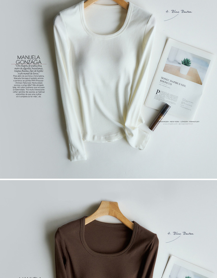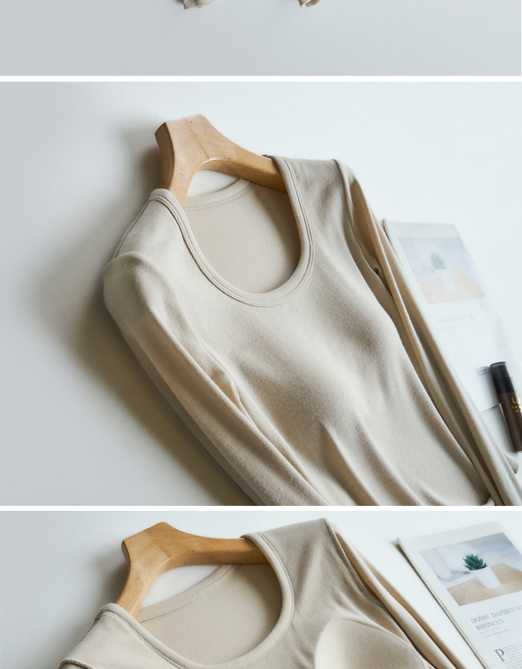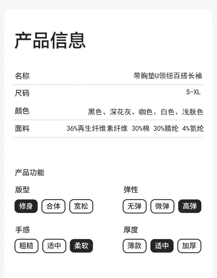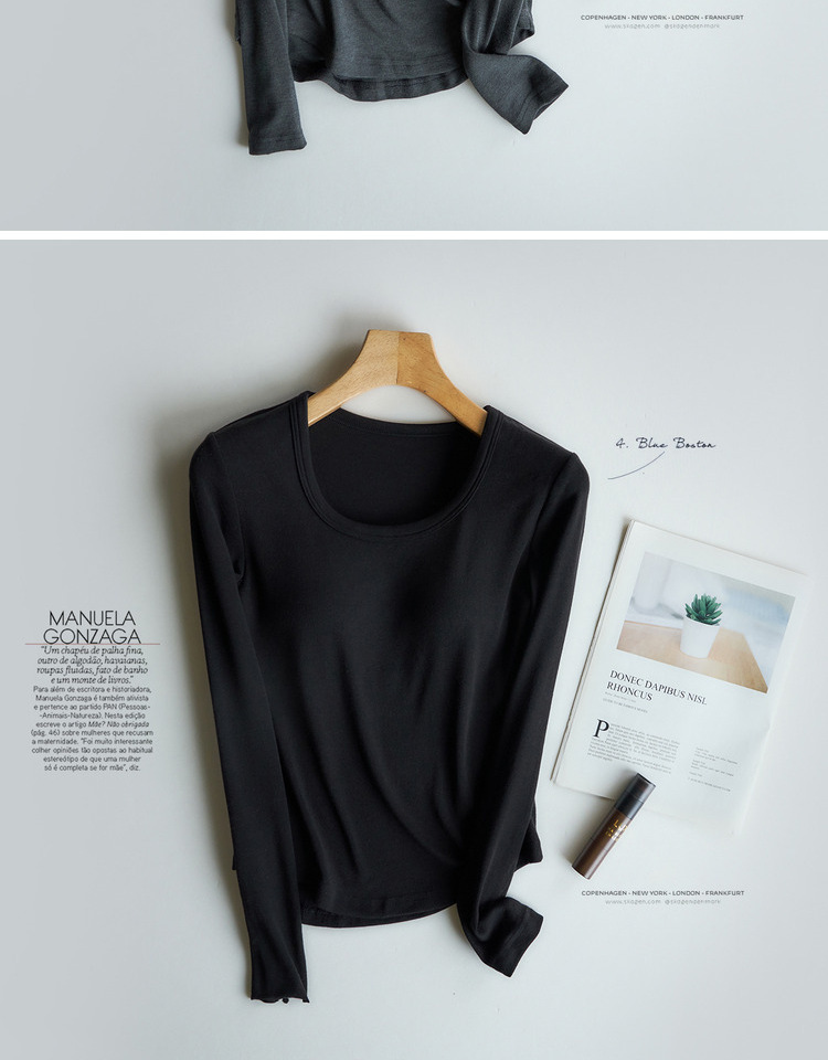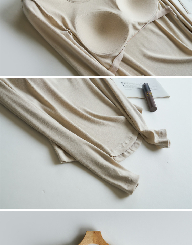 曲线打底衫 带胸垫U领亲肤内搭长袖T恤秋冬季针织固定杯百搭上衣