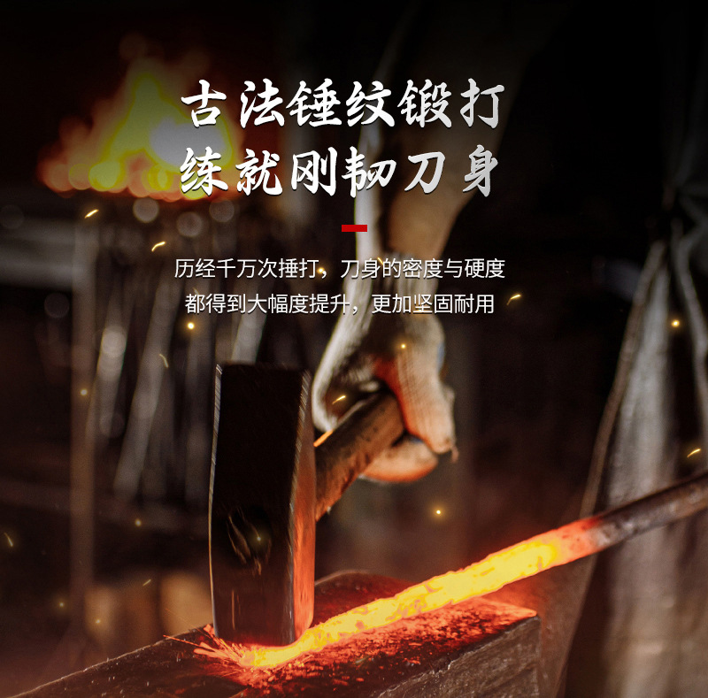 鍛打包丁は骨刀を切ります。伝統的な手作り刀は木の柄で切ります。