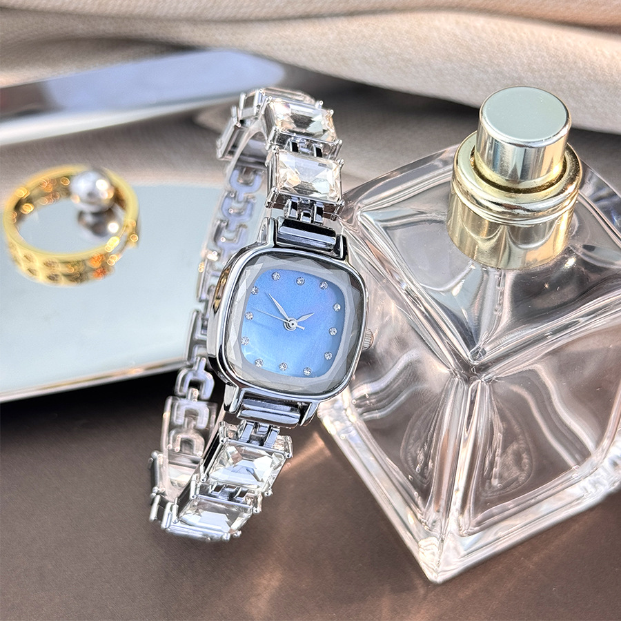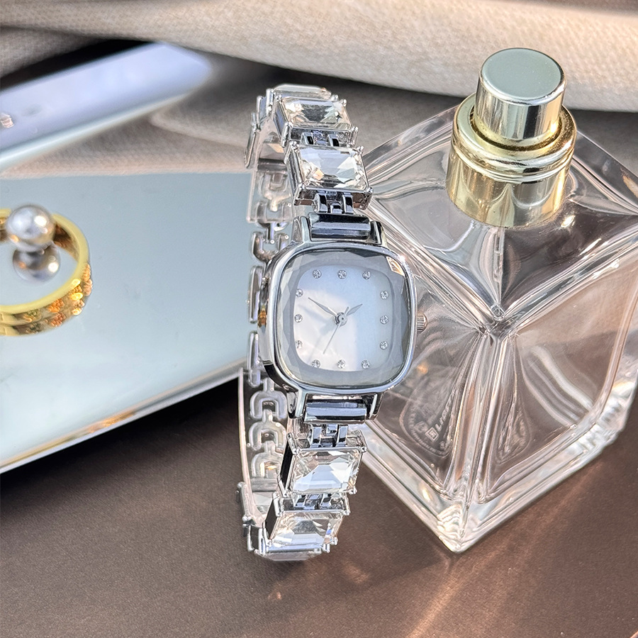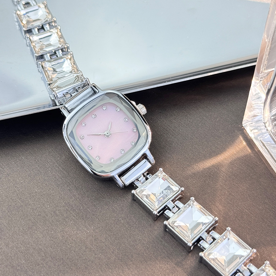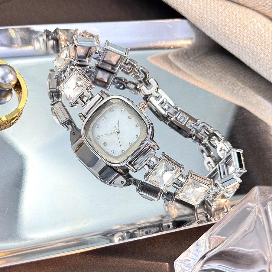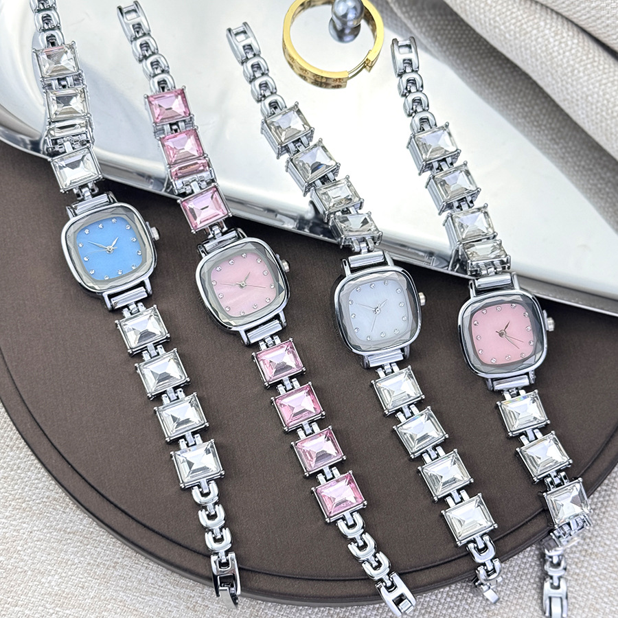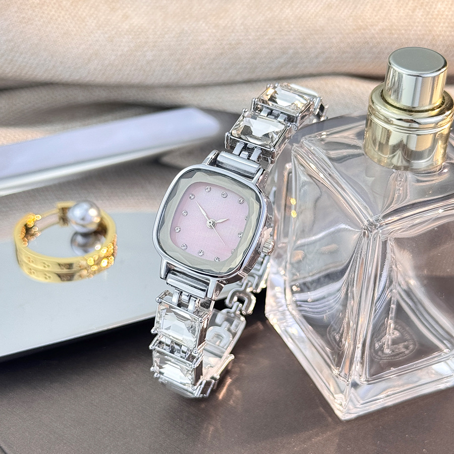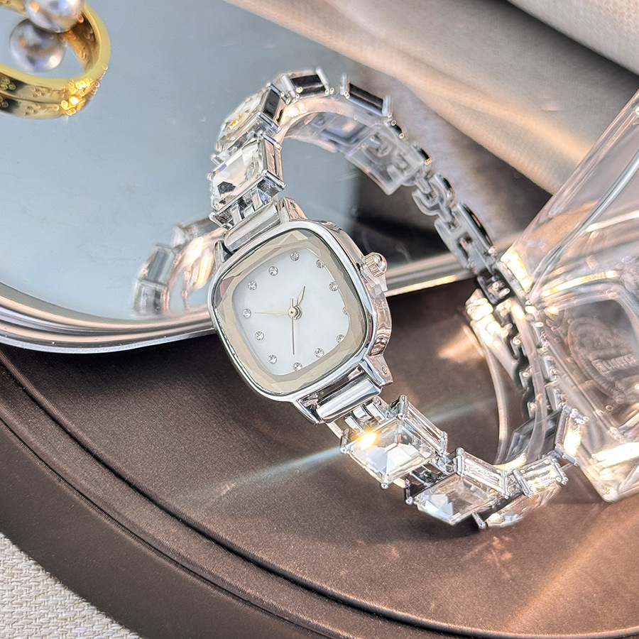 新款外贸爆款方形冰糖小方糖手表大钻闪闪贝母面手链女士腕表代发