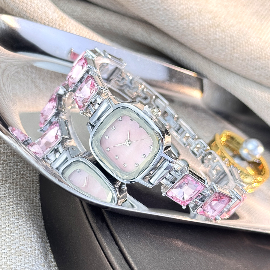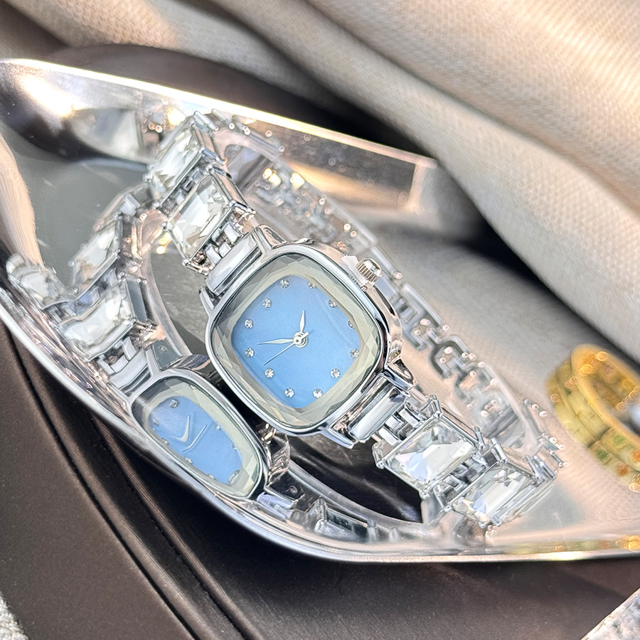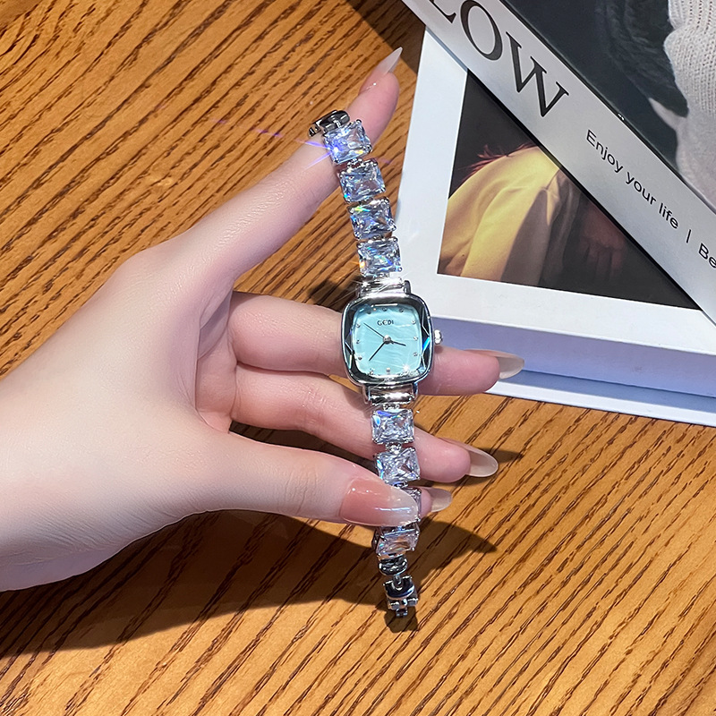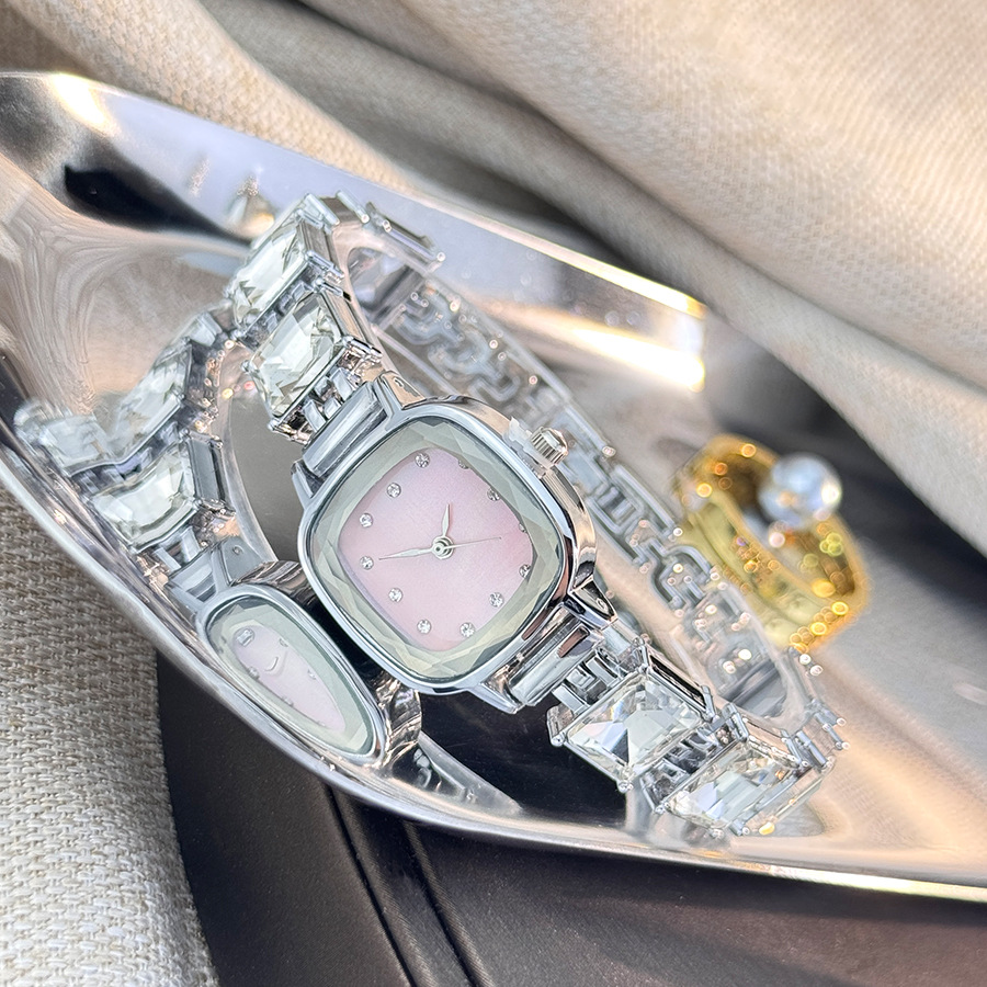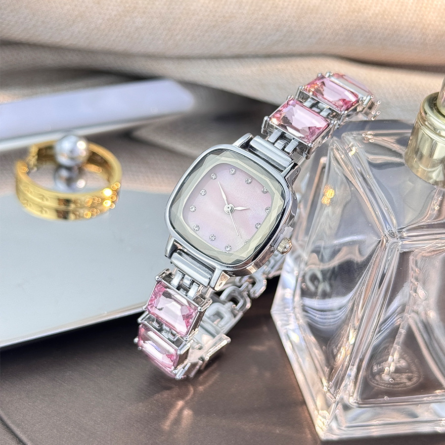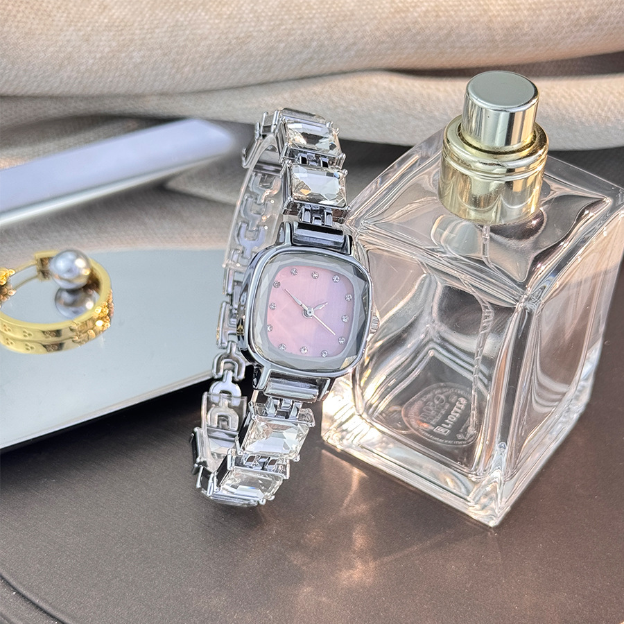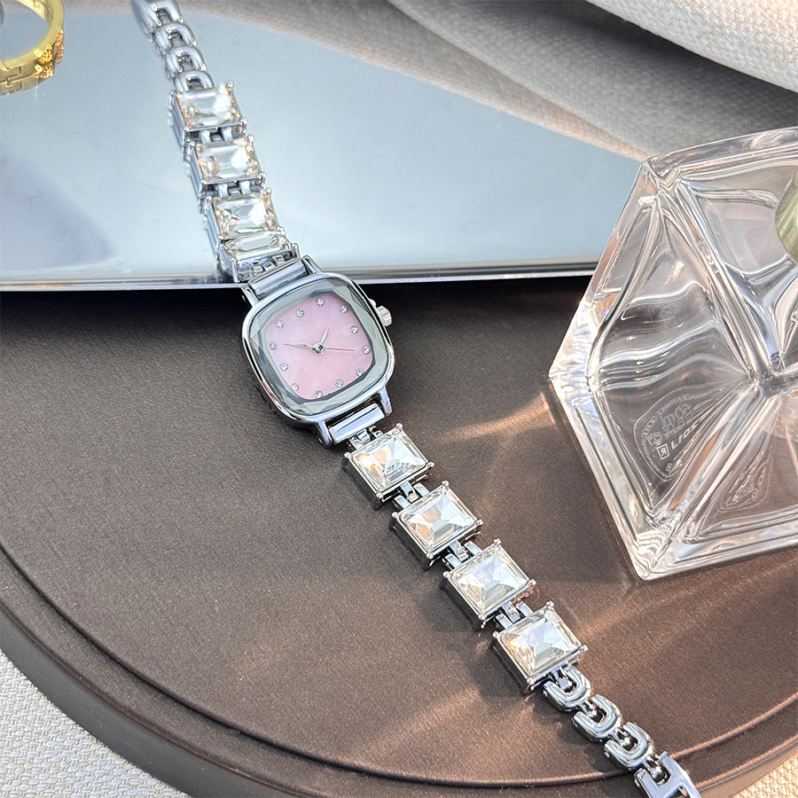新款外贸爆款方形冰糖小方糖手表大钻闪闪贝母面手链女士腕表代发