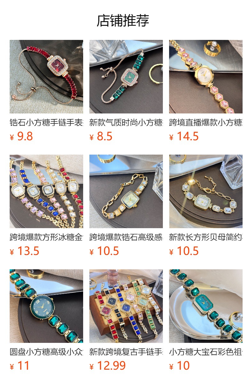 女石英时装手链表套装网红跨境外贸时尚小盘女手表镶彩钻女士手表