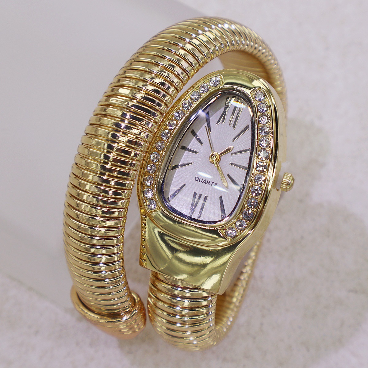 跨境热销爆款蛇形缠绕手表镶钻时尚手镯式个性独特女士手表厂家
