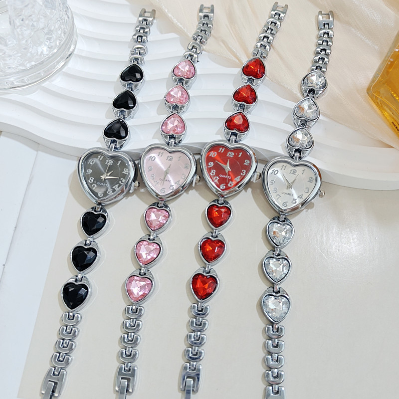 跨境新款高级感爱心镶钻女士手表小众时尚高颜值学生腕表手链女表