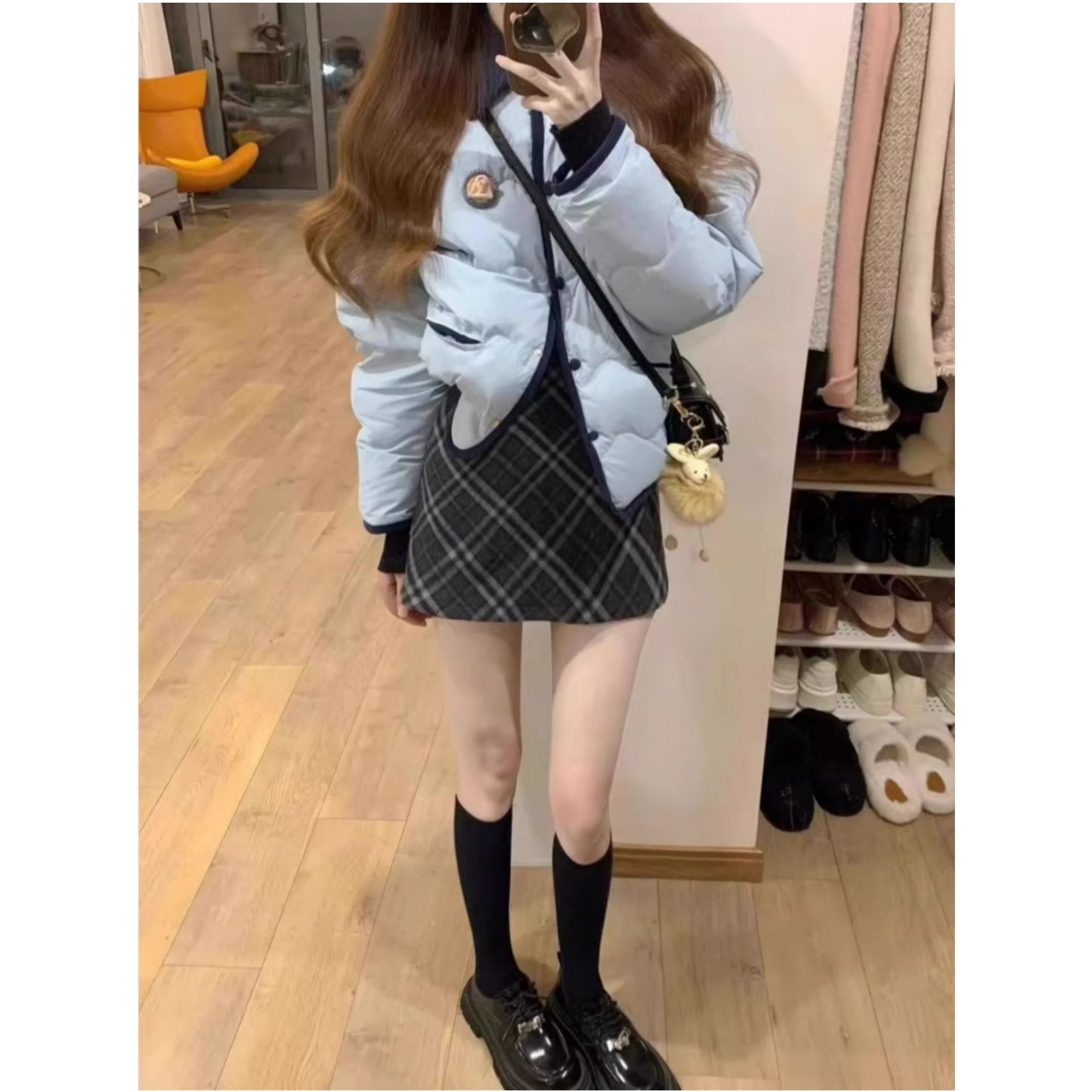 韓国系は毛のスカートを着ています。女性は小さいです。秋冬の高腰のスカートは高級感があります。
