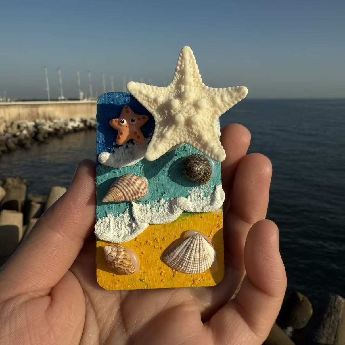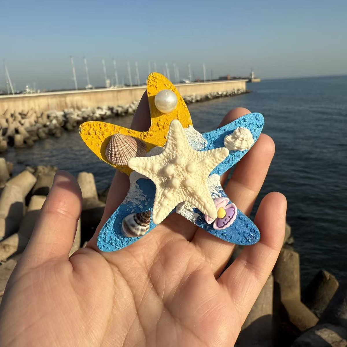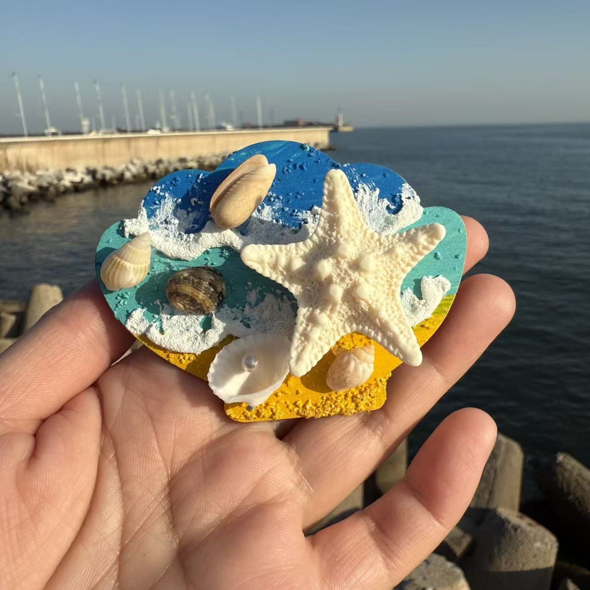 海星贝壳可旋转冰箱贴磁贴旅游纪念天然海螺工艺品肌理画文创