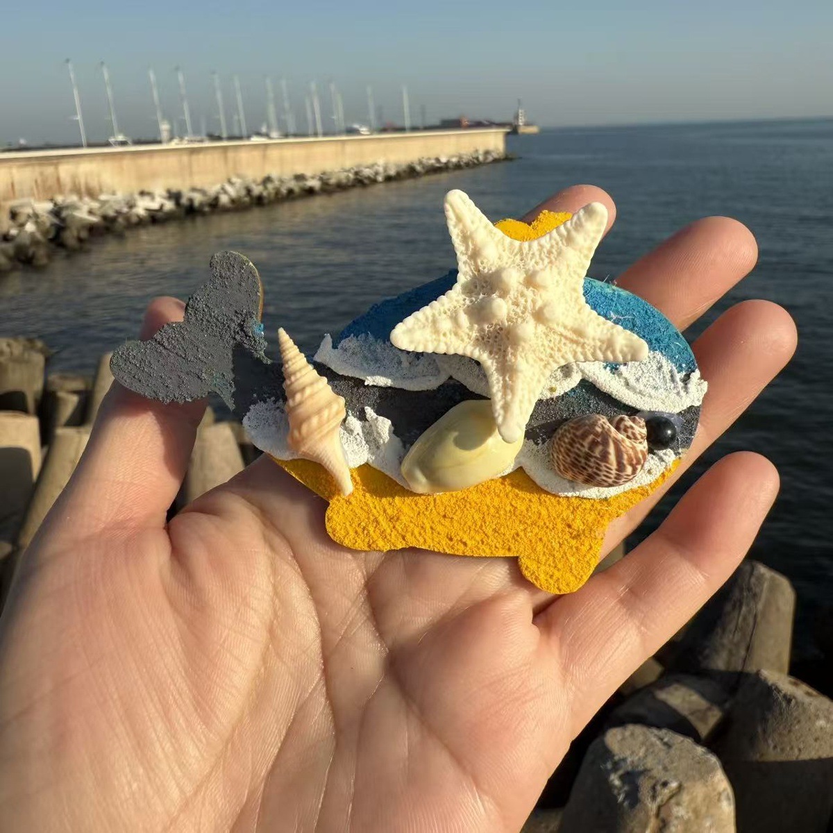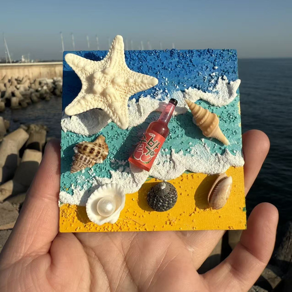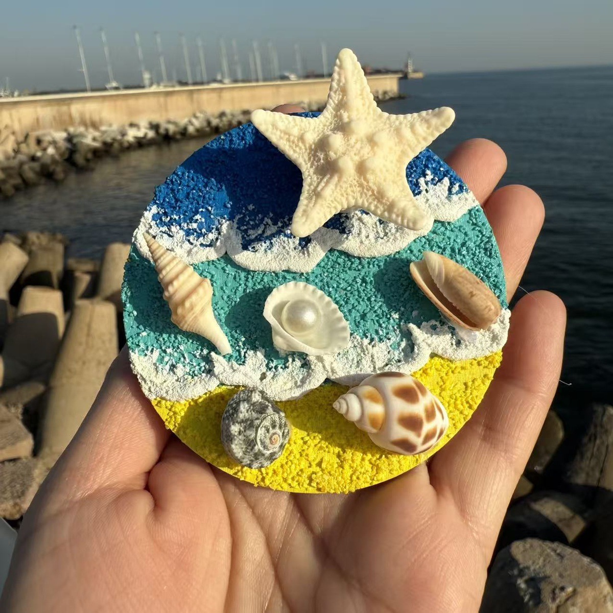 海星贝壳可旋转冰箱贴磁贴旅游纪念天然海螺工艺品肌理画文创