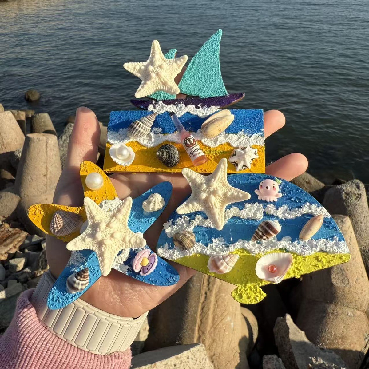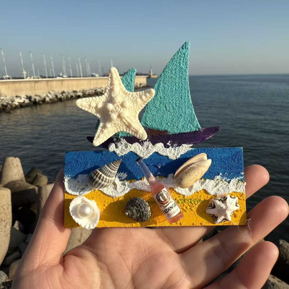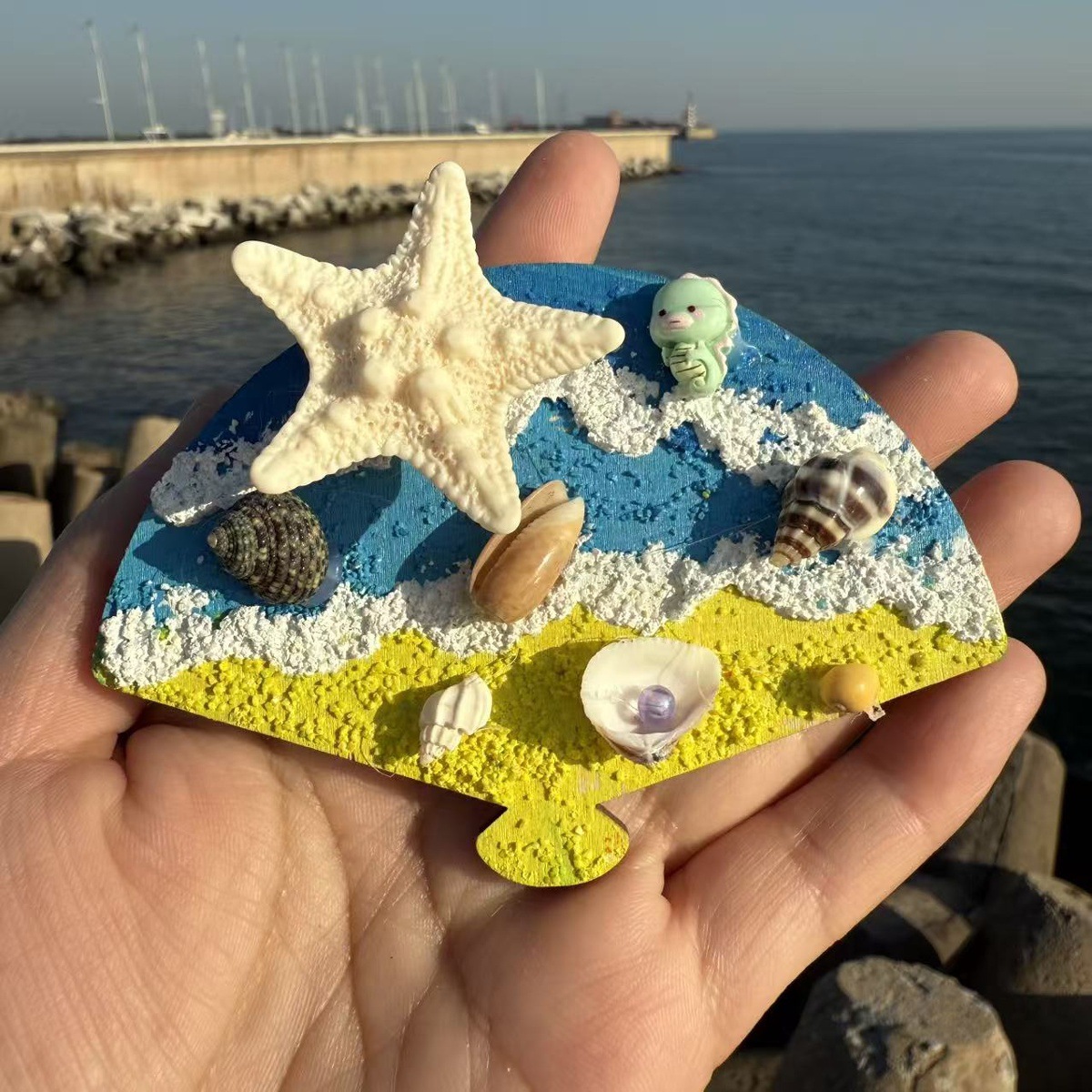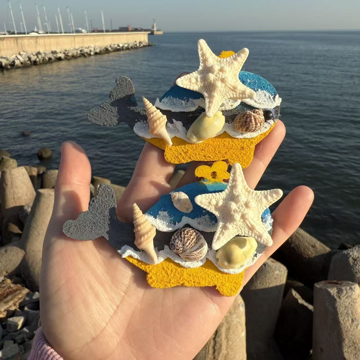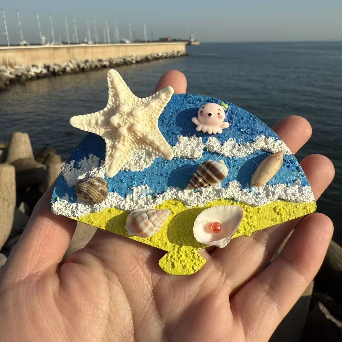 天然贝壳海螺海星创意木片冰箱贴挂件旅游城市纪念品伴手礼