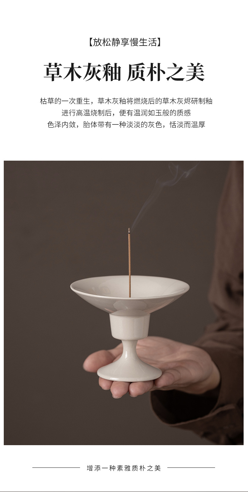 草木灰釉创意高足香插座仿宋陶瓷线香盘香炉茶室禅意檀香炉香薰炉