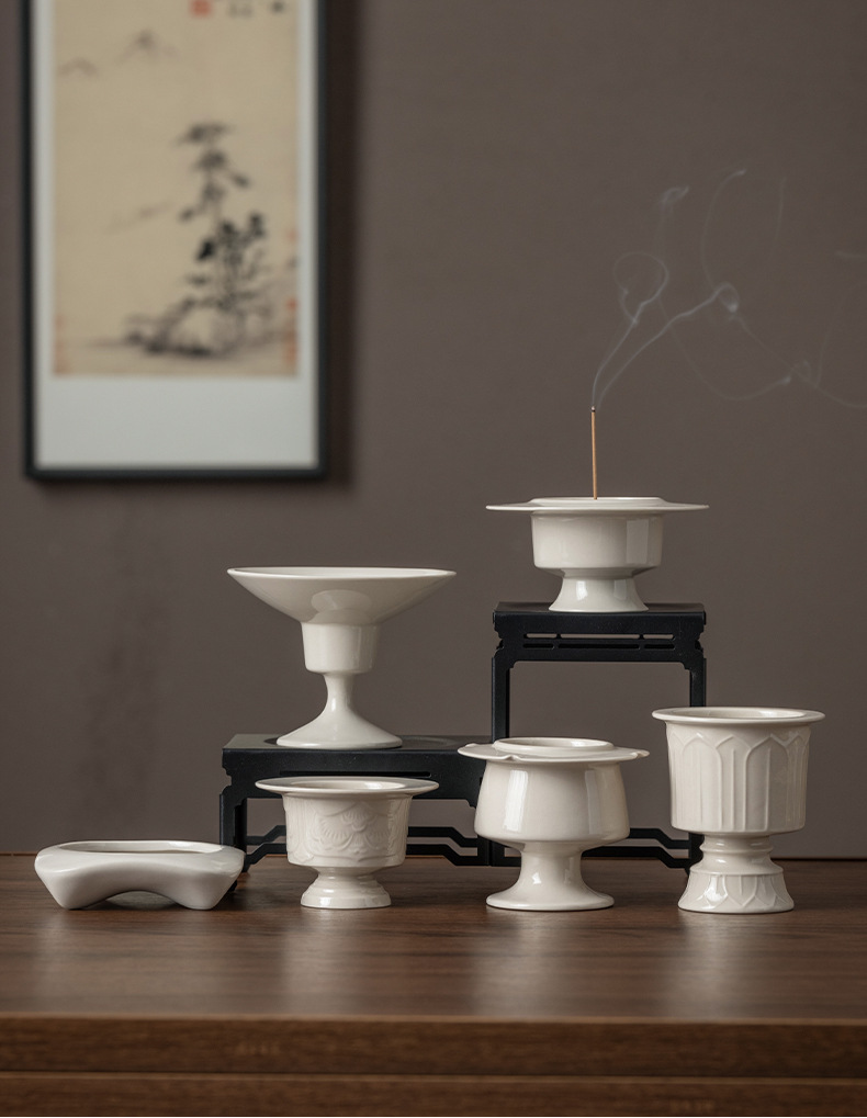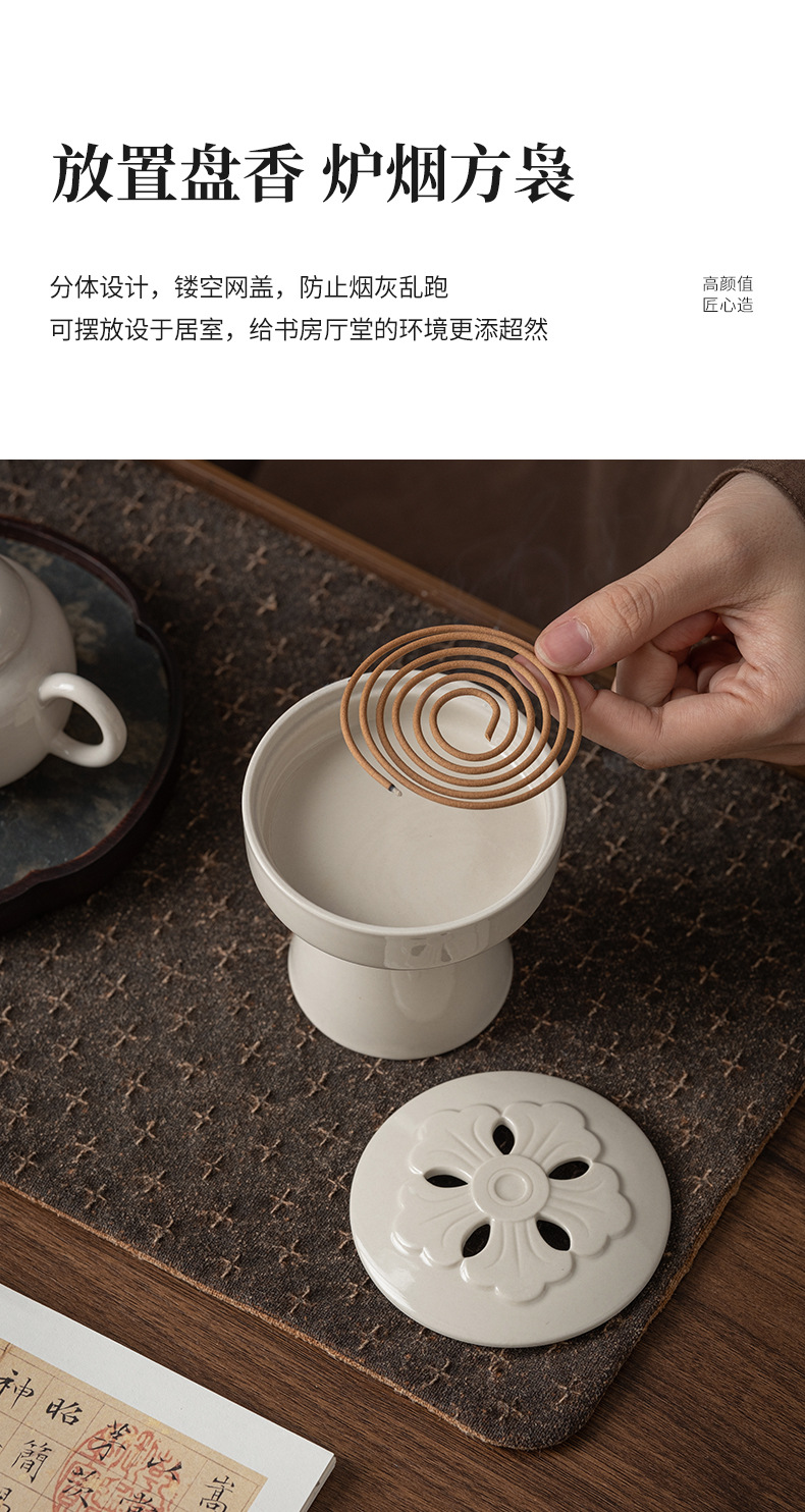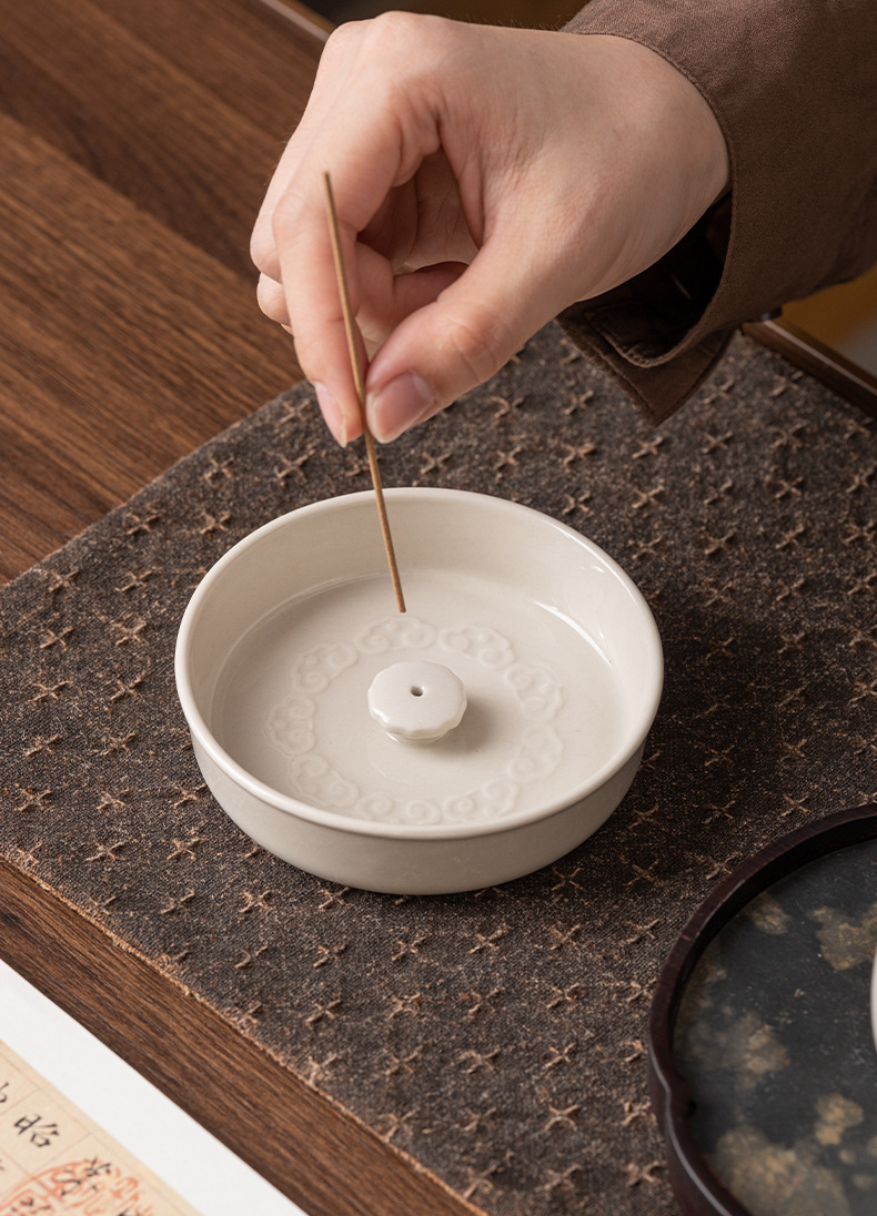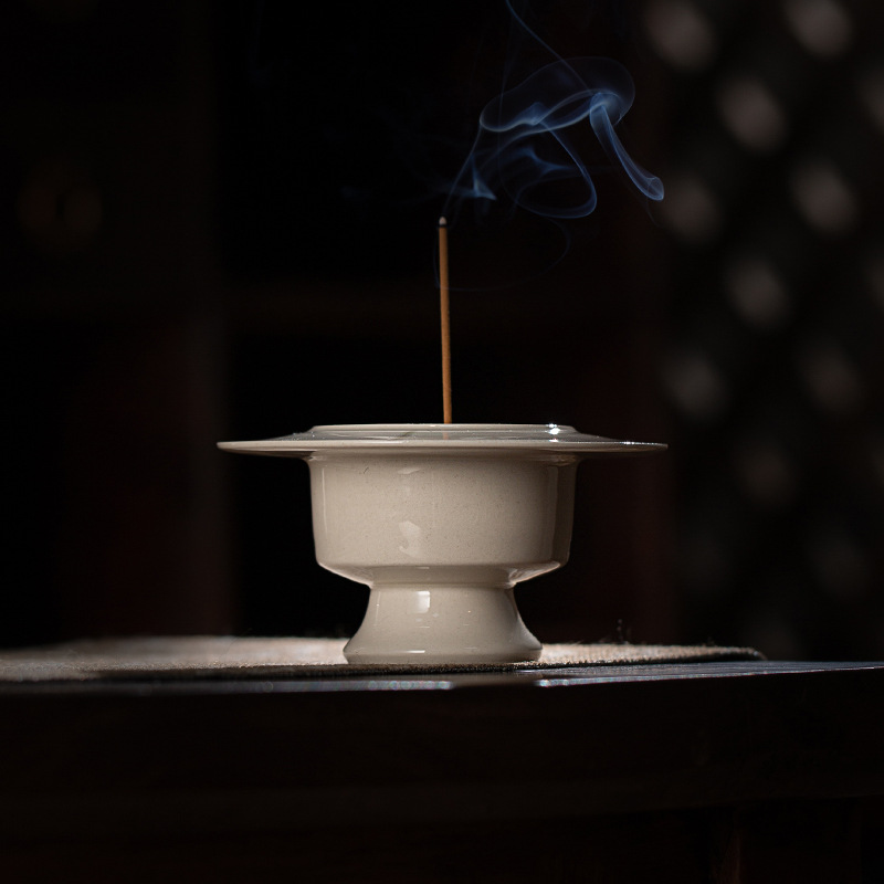 草木灰香炉陶磁器香薫炉中国式盤香ベース線香炉茶道部品ろうそく台上香供仏