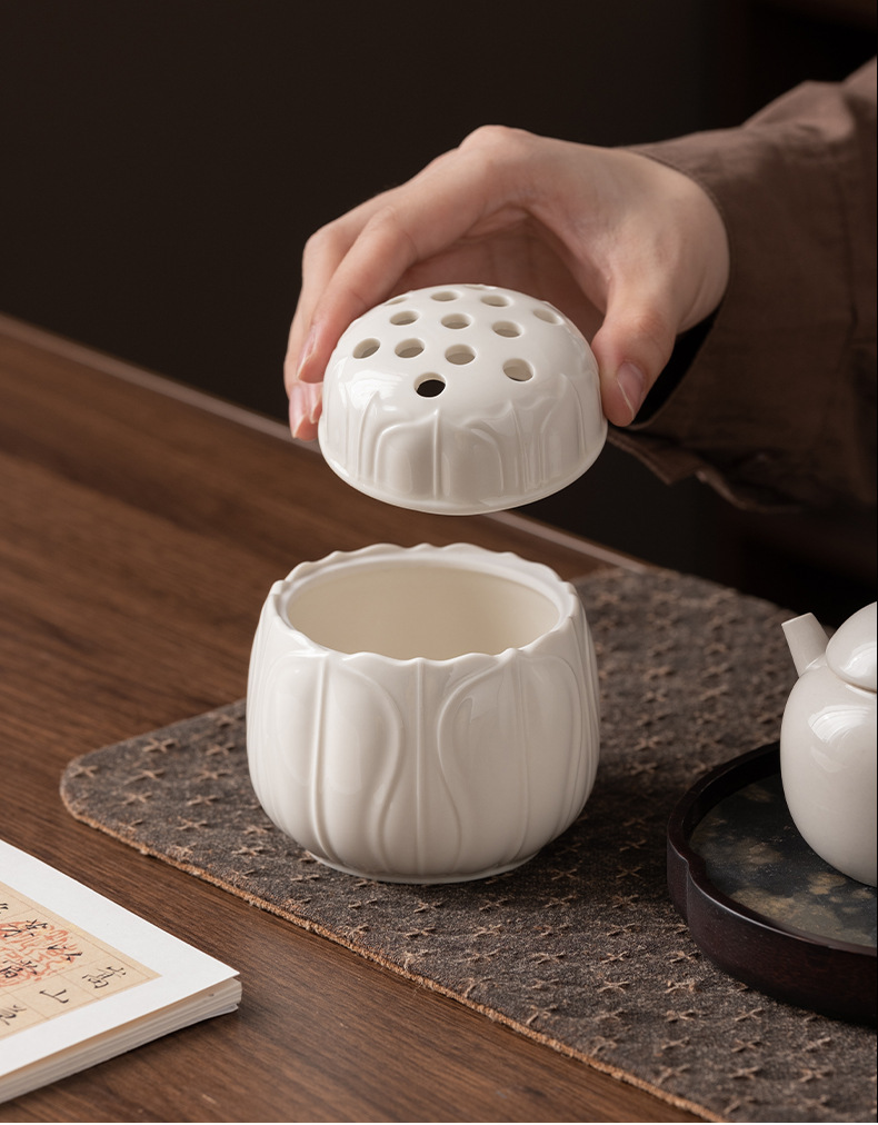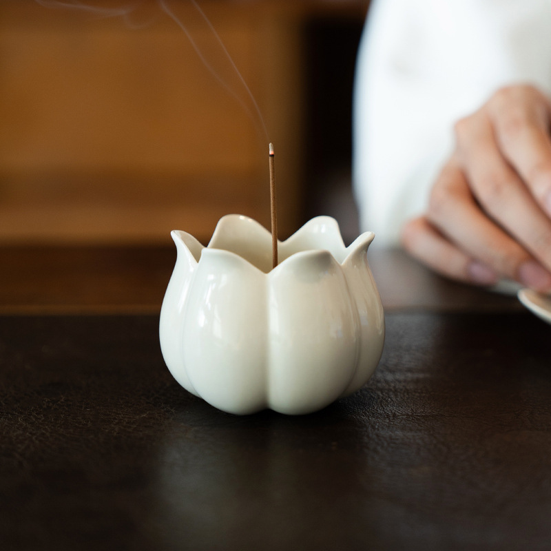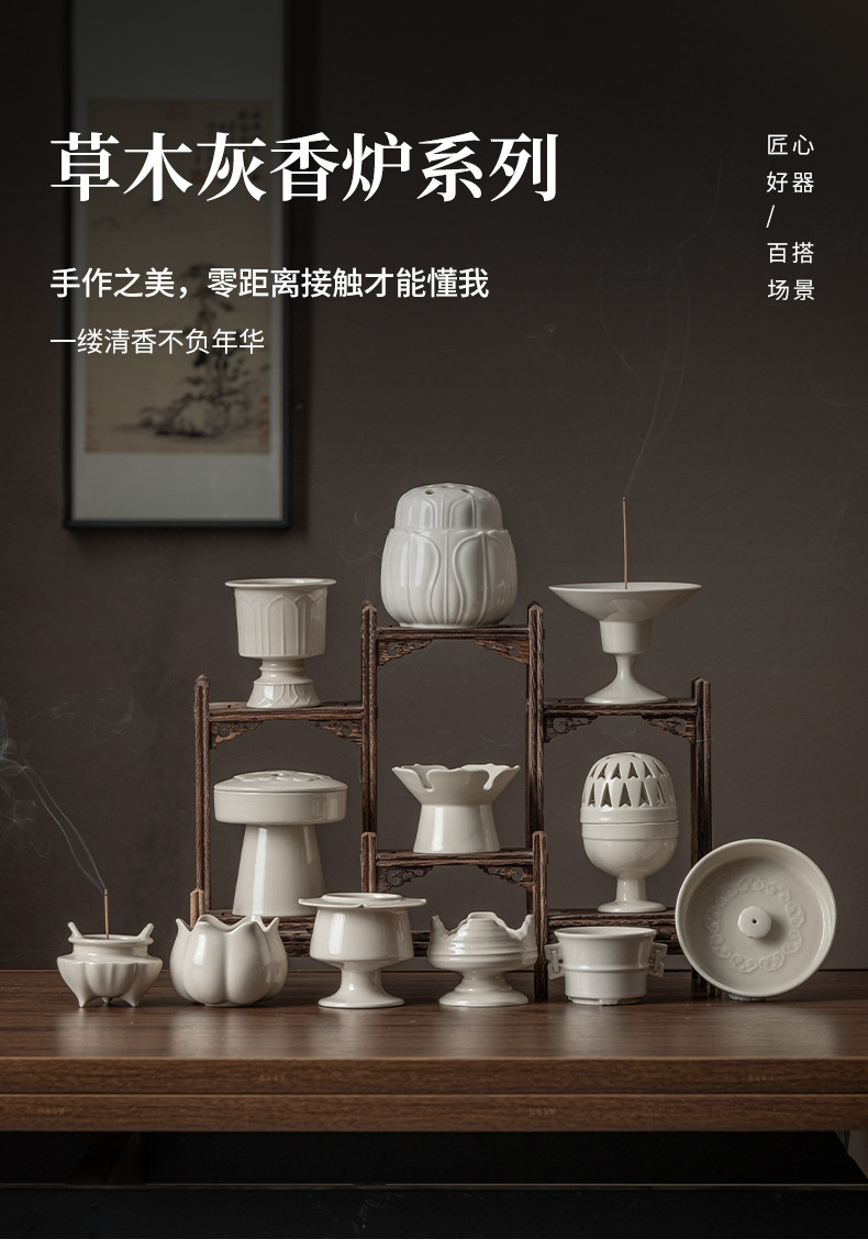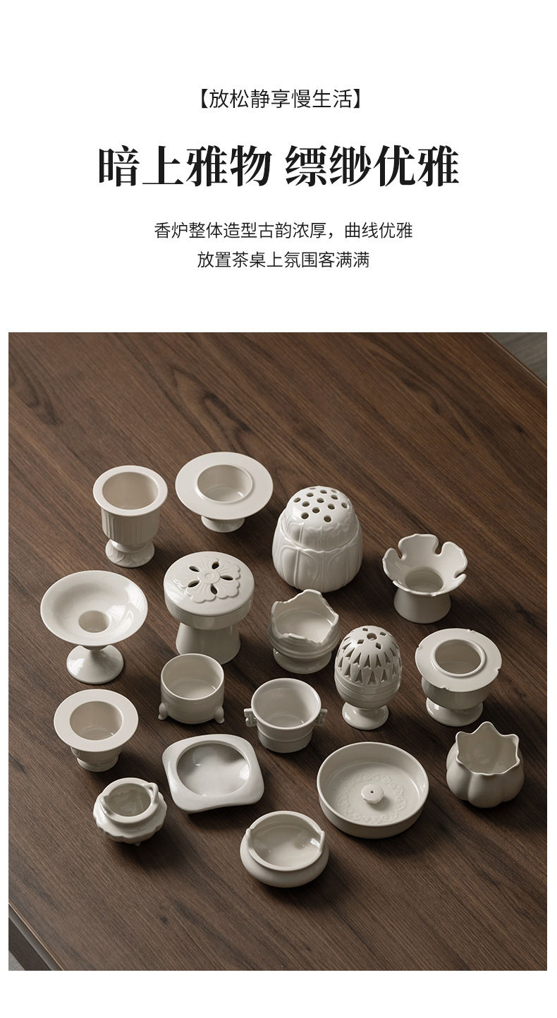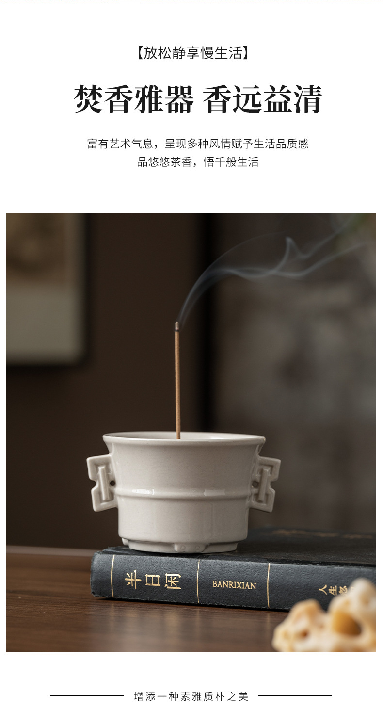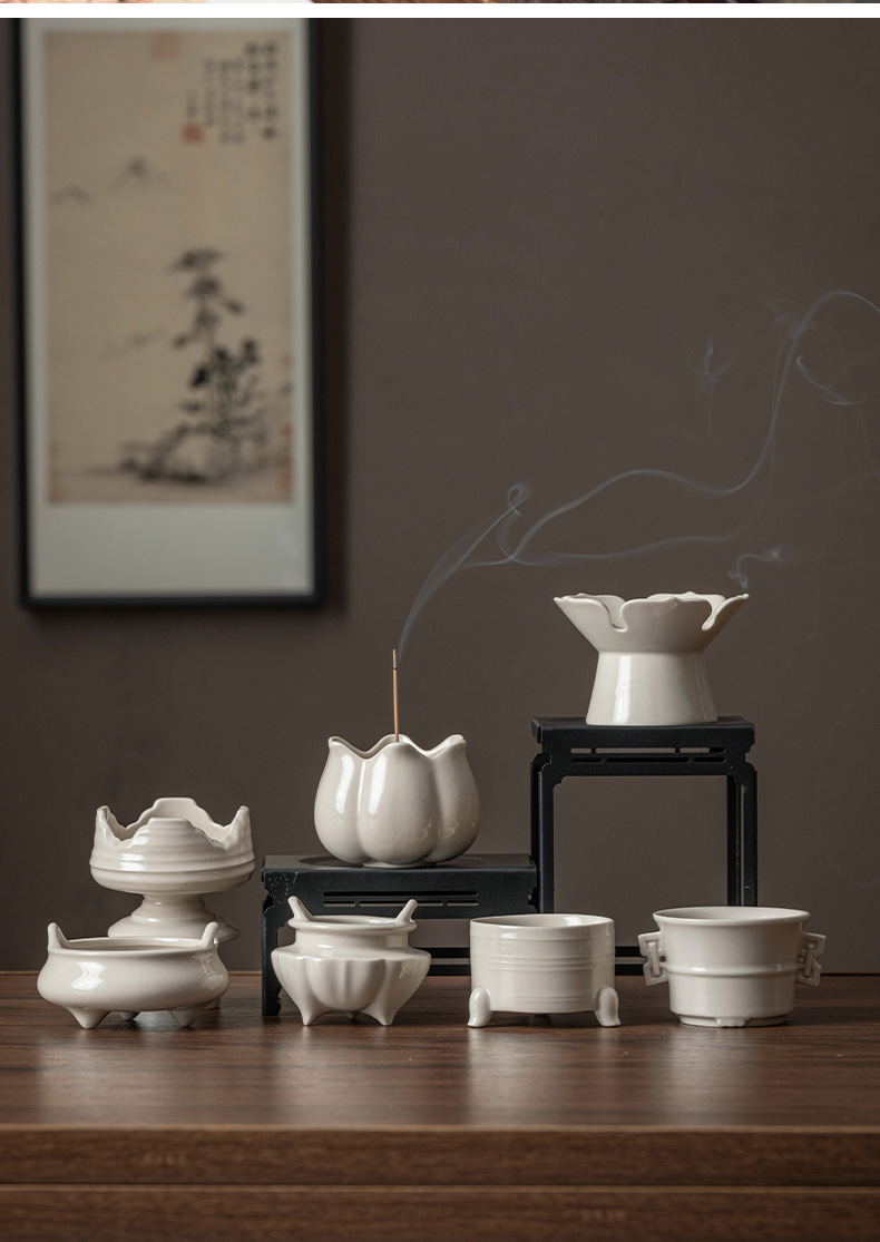 草木灰白官窯置物室内ホノルル線香沈香炉茶室香薫炉中国式陶磁器香炉香道