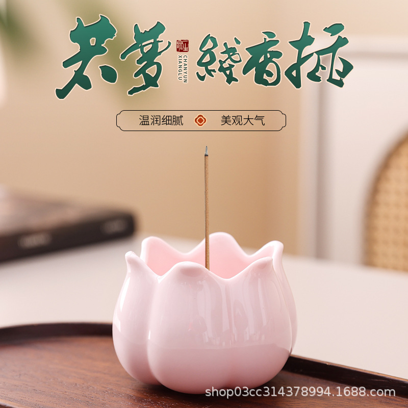 ピンクセラミックアロマセラピー炉手作り香器線香白檀沈香コイル香家庭用屋内香炉