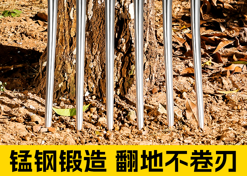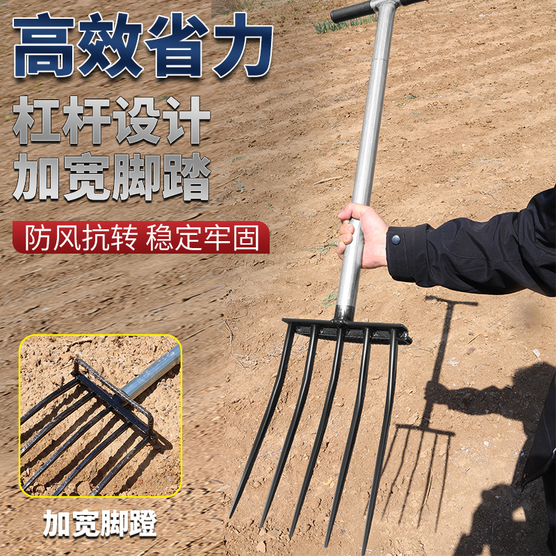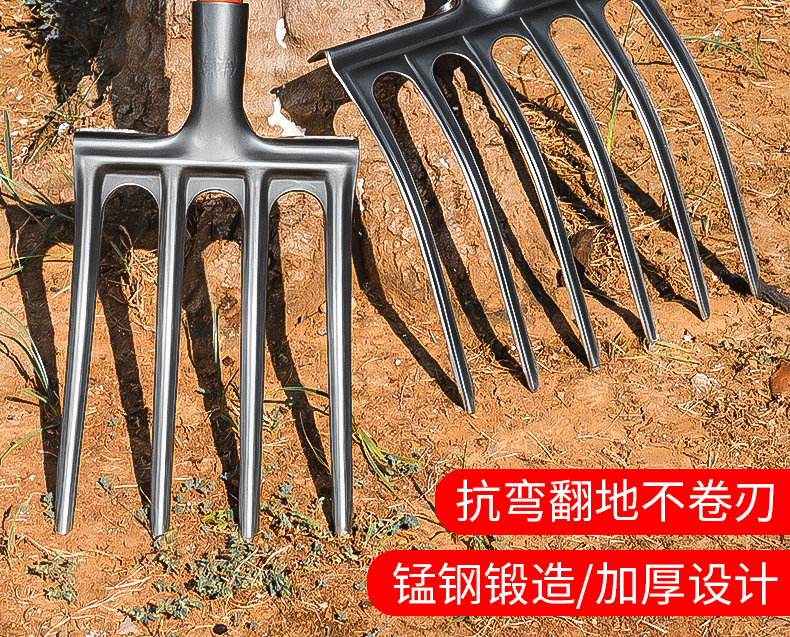 农用翻地松土神器翻土钢叉挖红薯叉子四齿五挖铲地农具工具大全