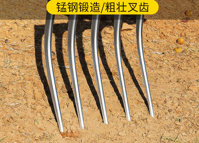 翻地农用铁叉粪叉子加厚锰钢叉四齿五齿松土工具家用挖土神器批发