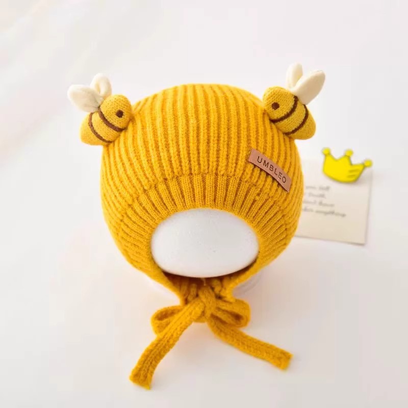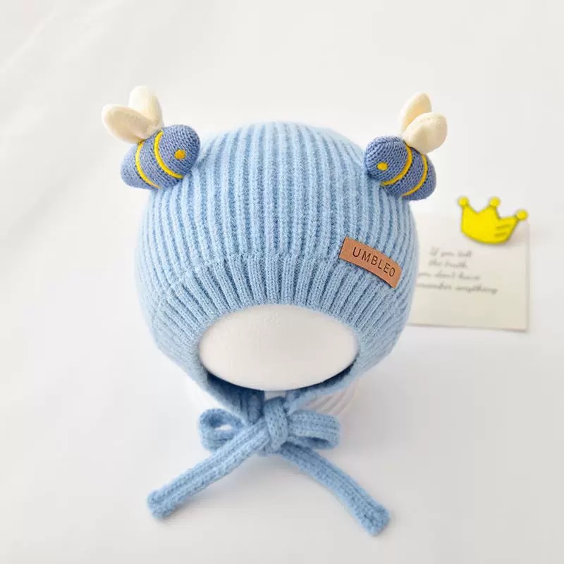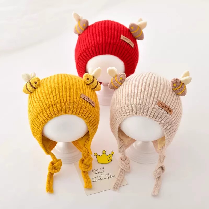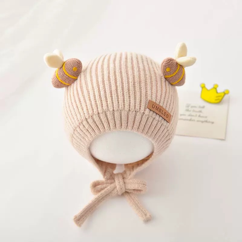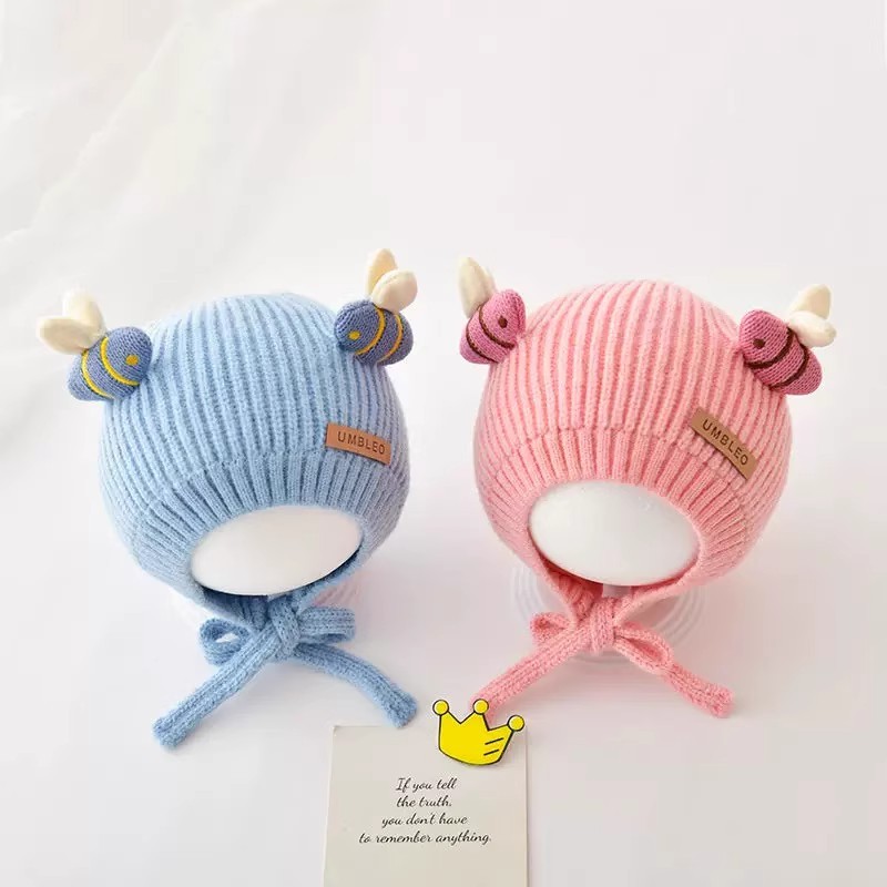 婴儿帽子秋冬时尚可爱细带针织帽潮童宝宝洋气加厚保暖护耳毛线帽