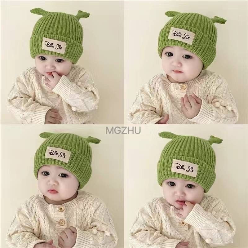 赤ちゃんの毛糸帽秋冬中厚耳保護帽韓国版布かわいい触角赤ちゃんニット保温フード