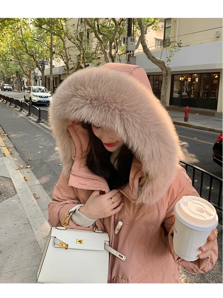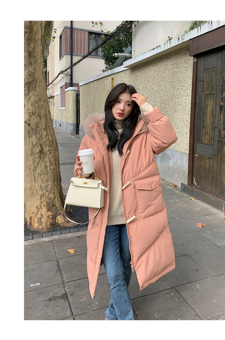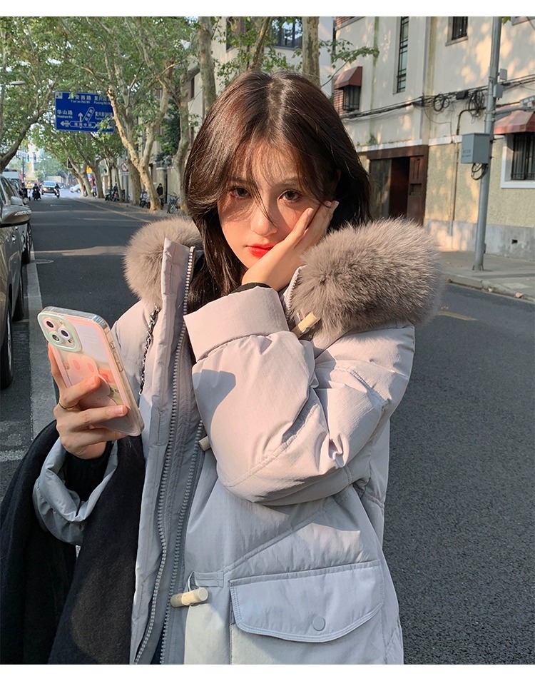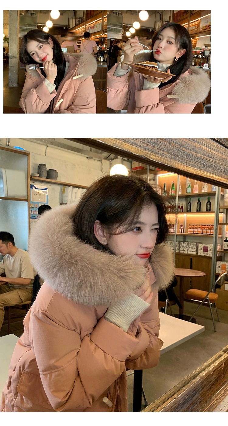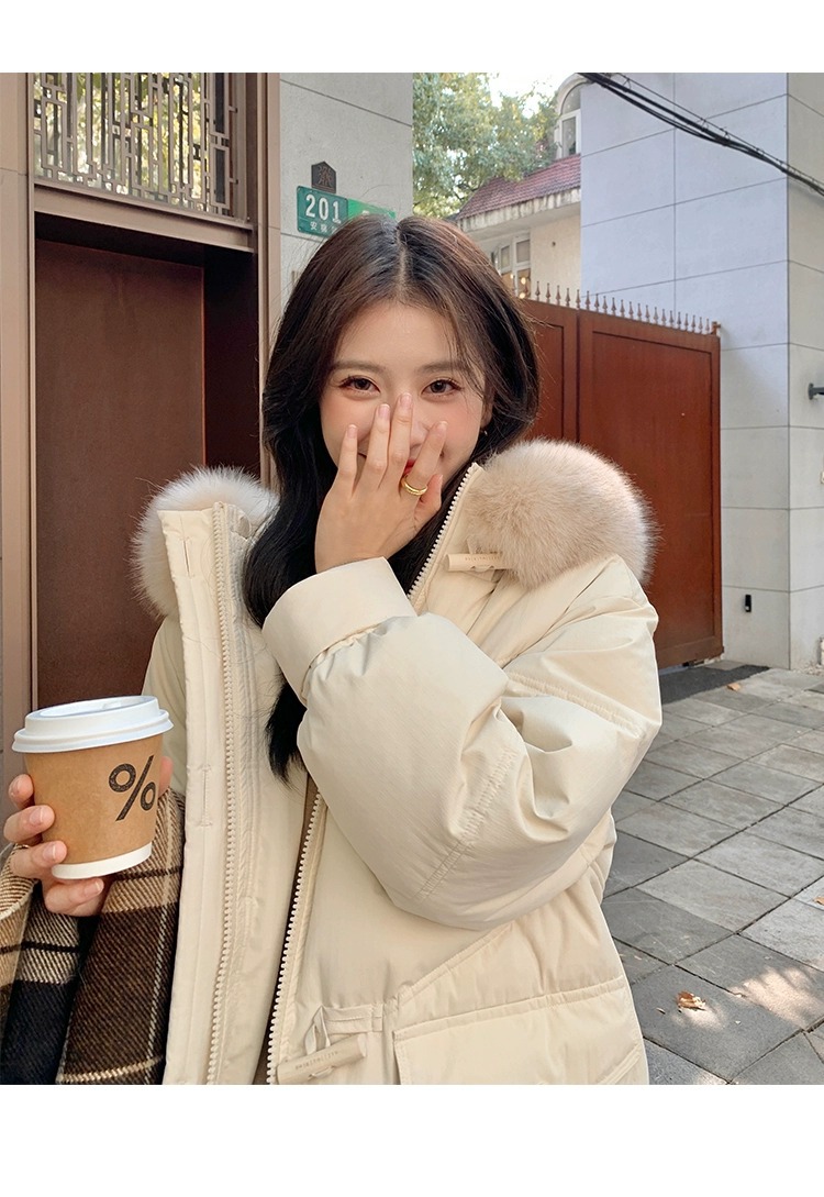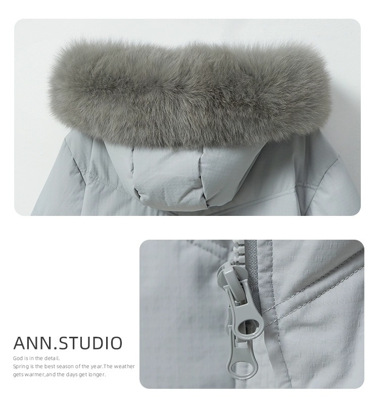 平湖羽绒服女中长款韩版宽松加厚白鸭绒小个子大毛领狐狸毛设计感