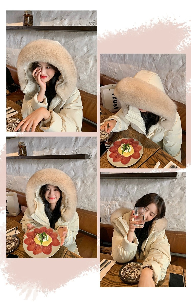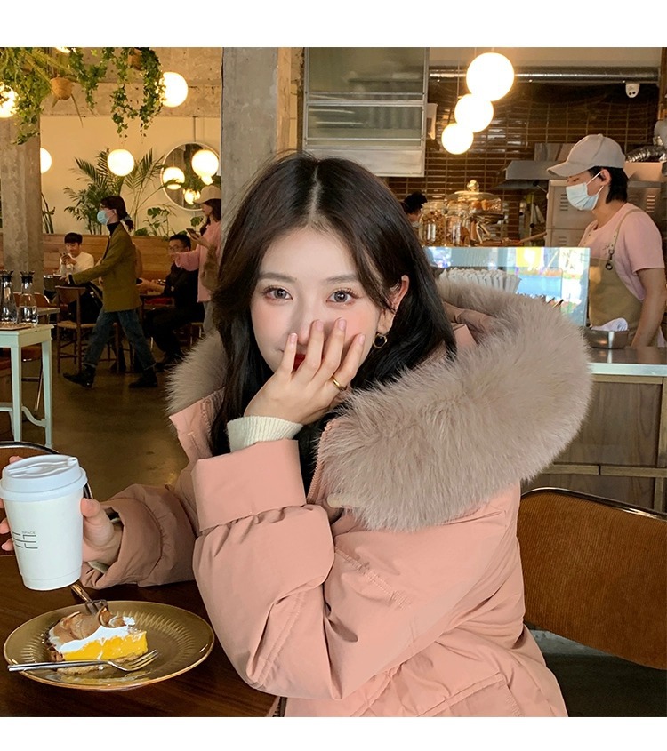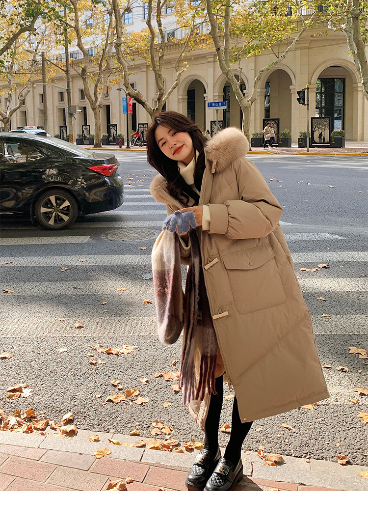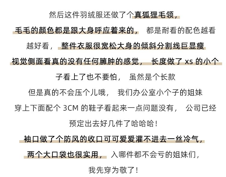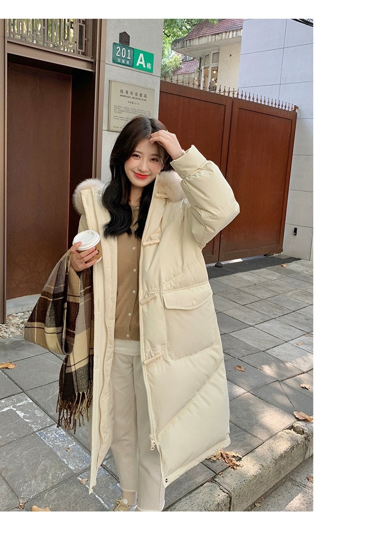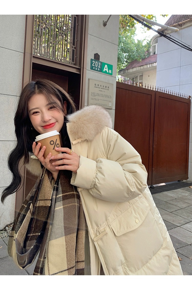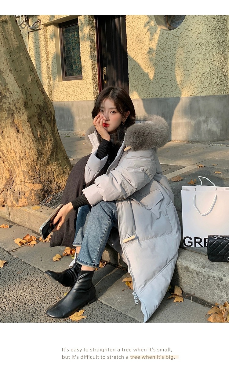 平湖羽绒服女中长款韩版宽松加厚白鸭绒小个子大毛领狐狸毛设计感