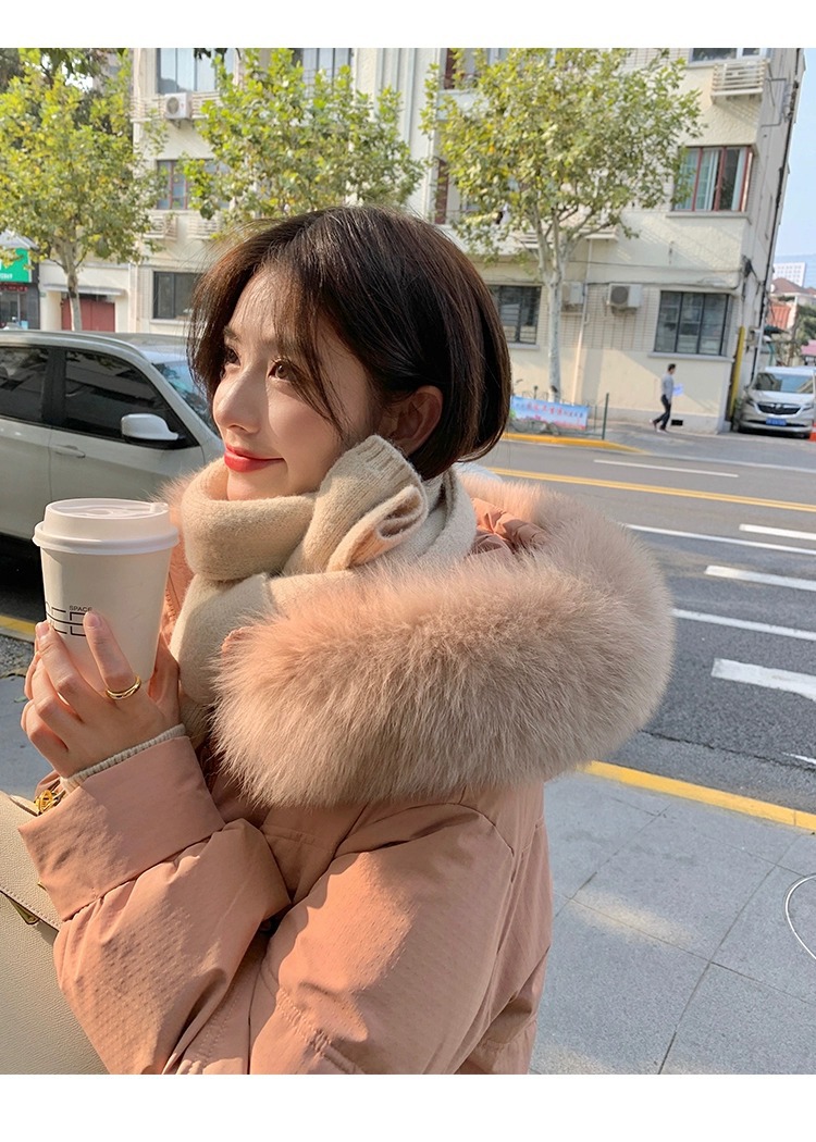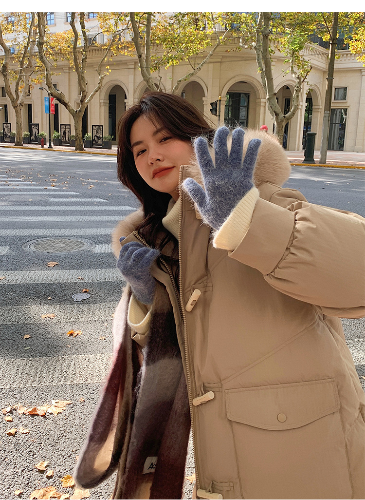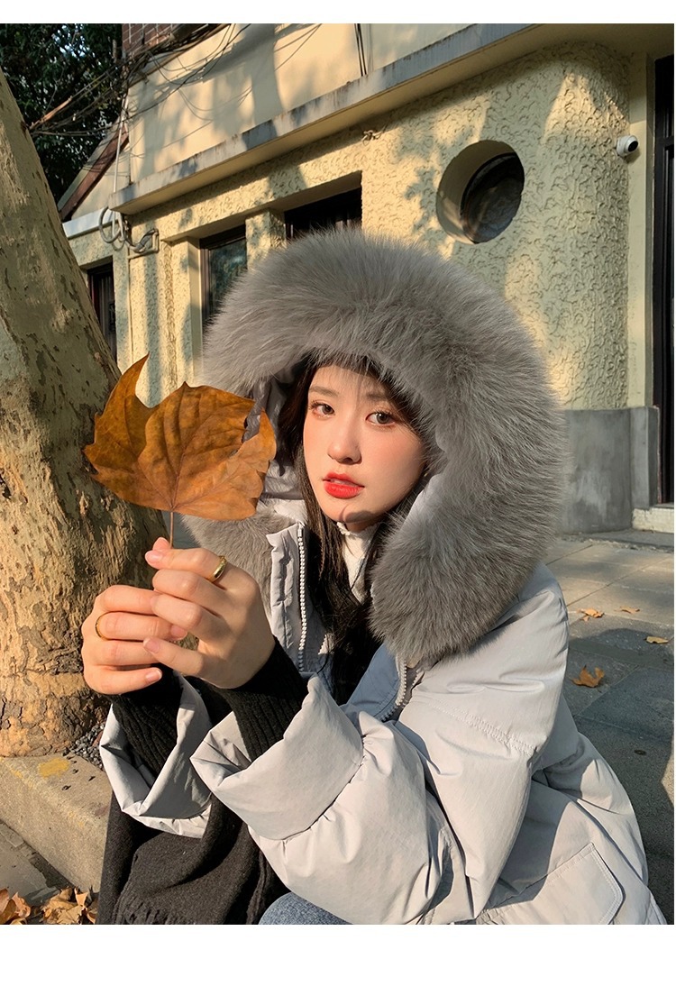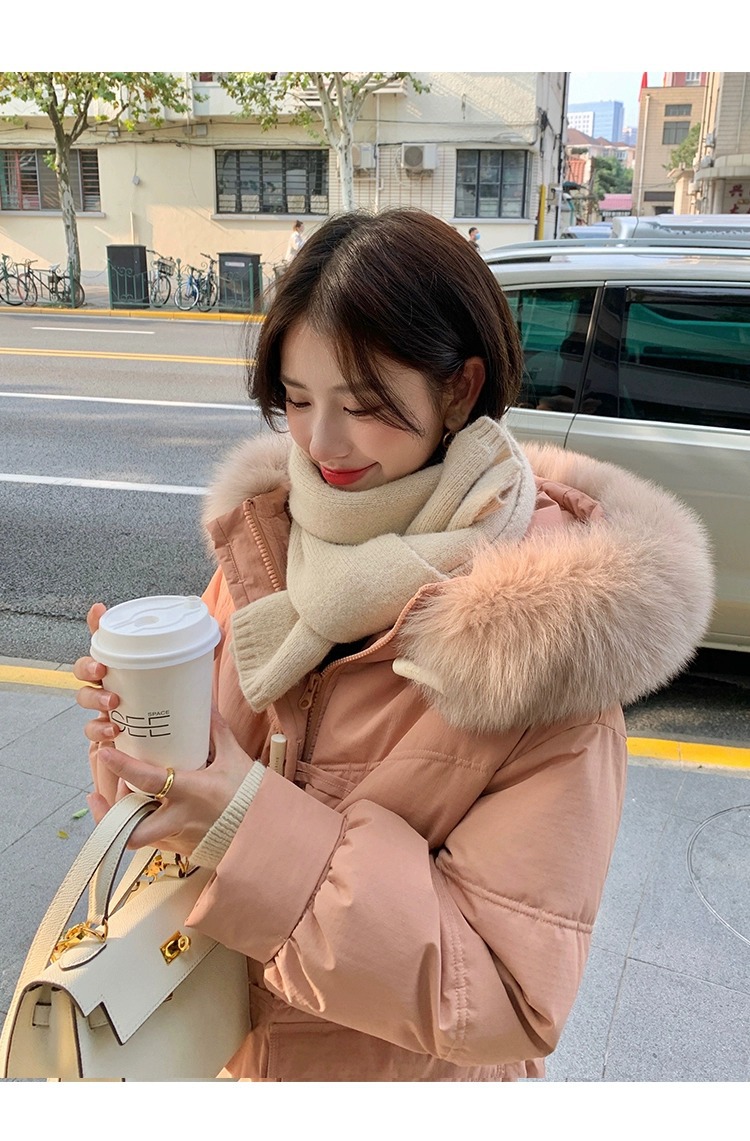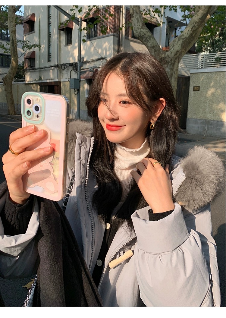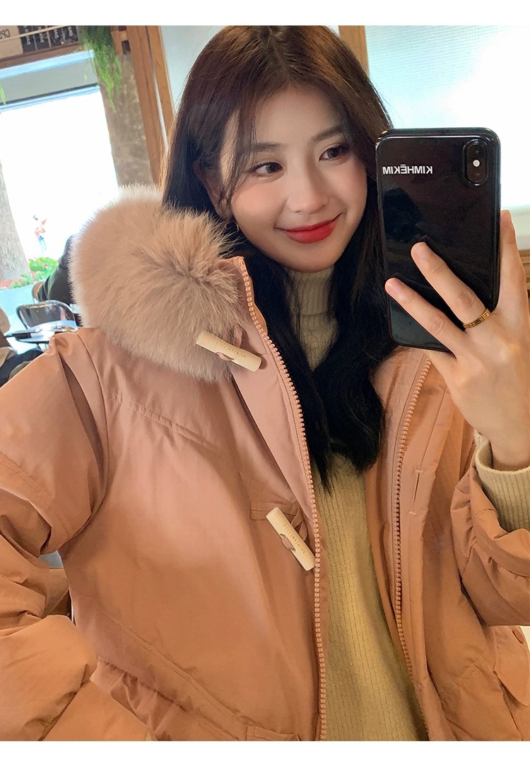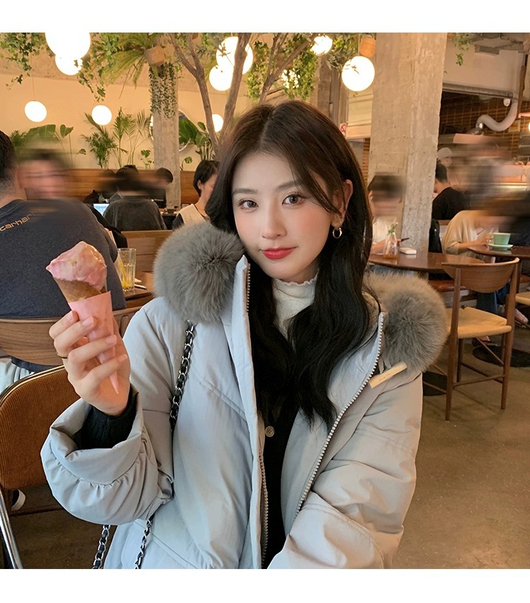 平湖羽绒服女中长款韩版宽松加厚白鸭绒小个子大毛领狐狸毛设计感