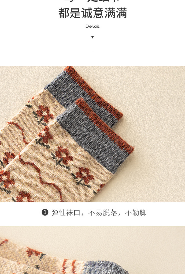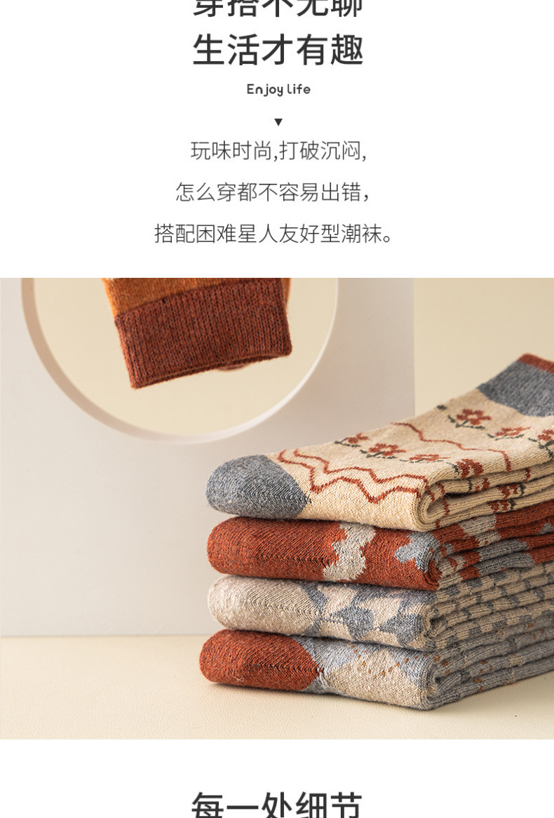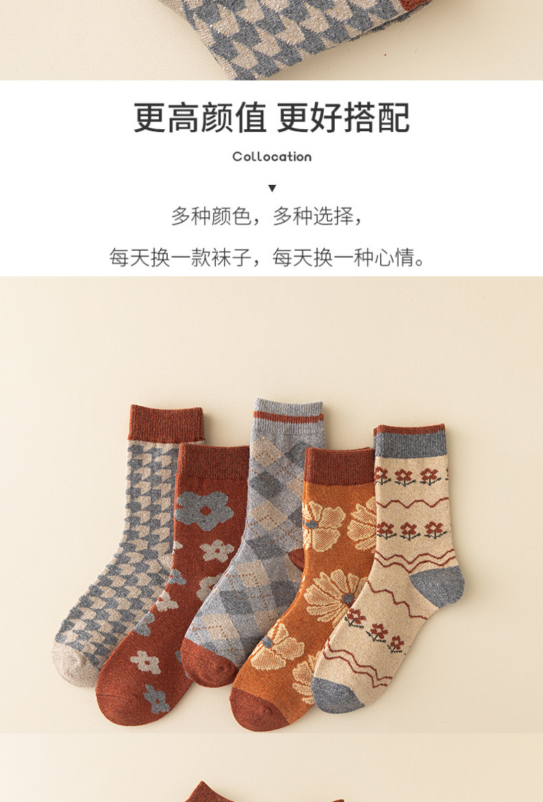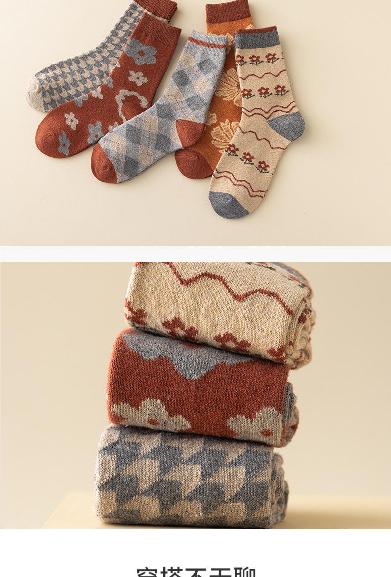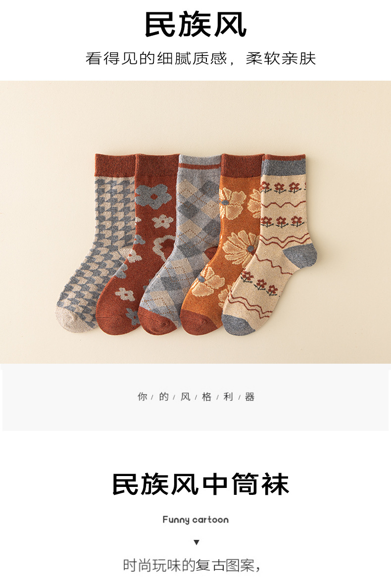 亚马逊跨境外贸袜子女民族风中筒袜羊毛袜复古提花女士长筒袜批发