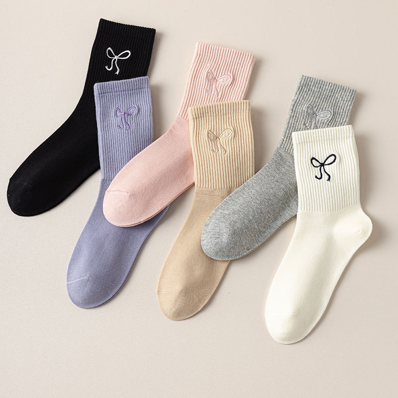 秋冬の新型の靴下の女性はボールの中で筒の靴下の刺繍の蝶結びの積み重ねの靴下の綿の靴下の女性の靴下のメーカーを抵抗します。