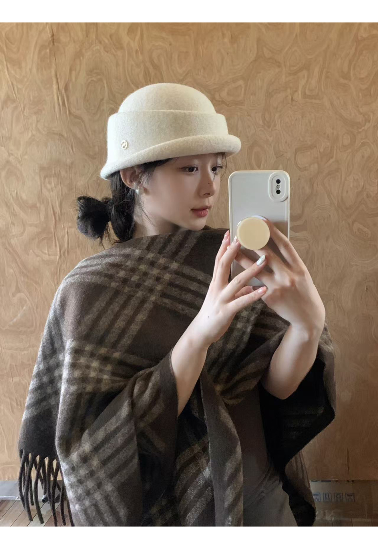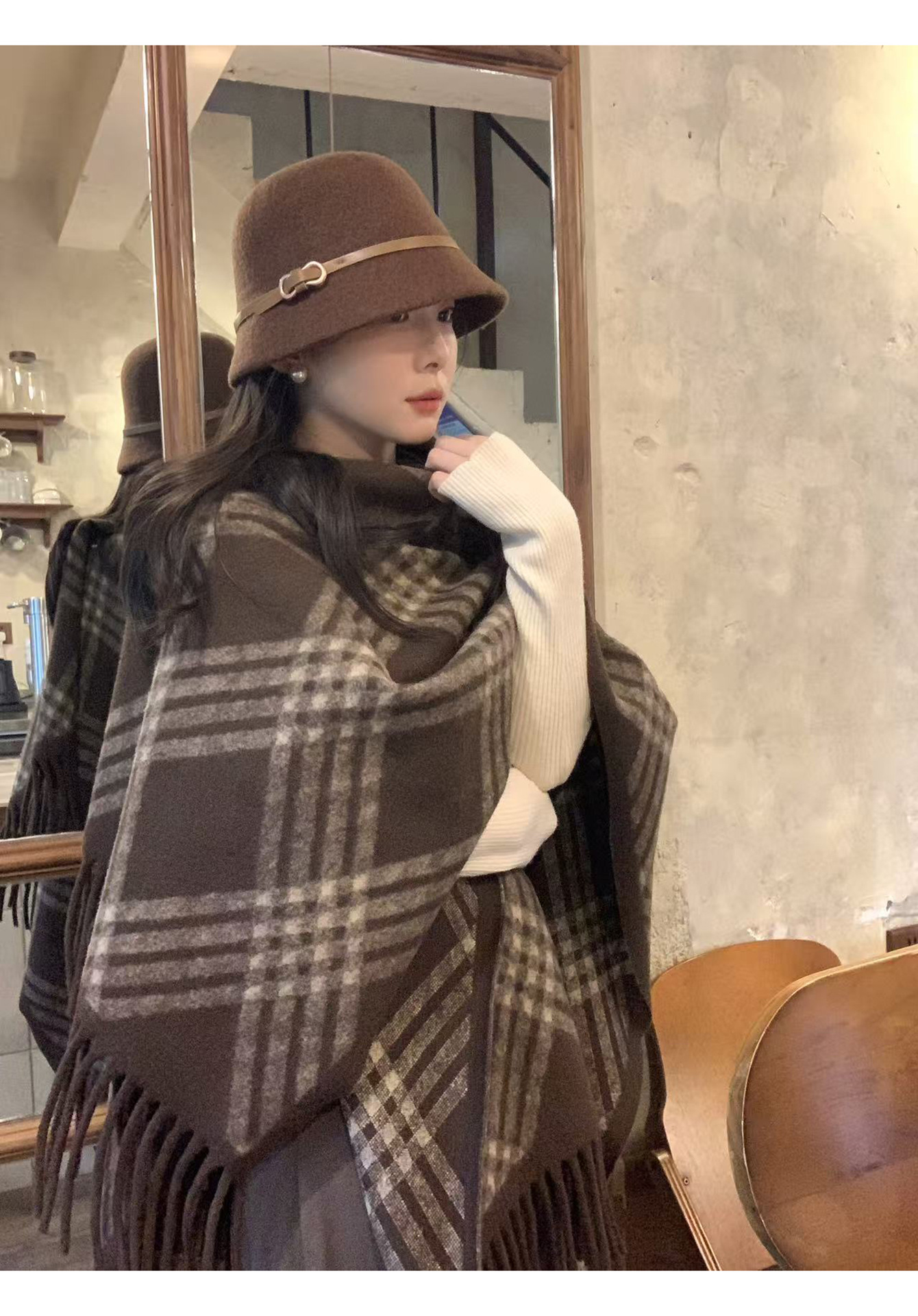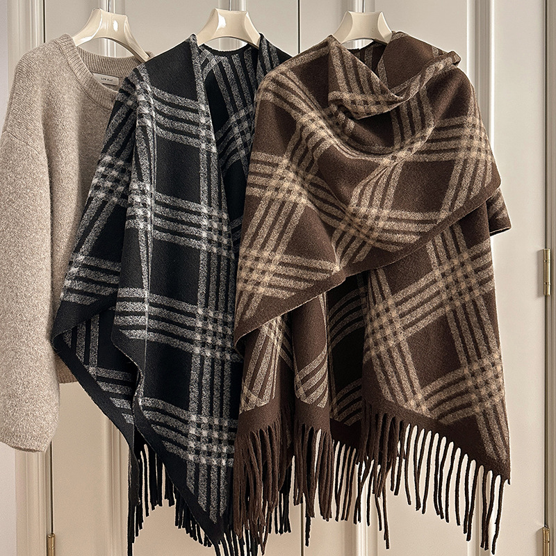 复古英伦风格纹大披肩女秋冬高级感保暖斗篷外搭时尚流苏围巾披风