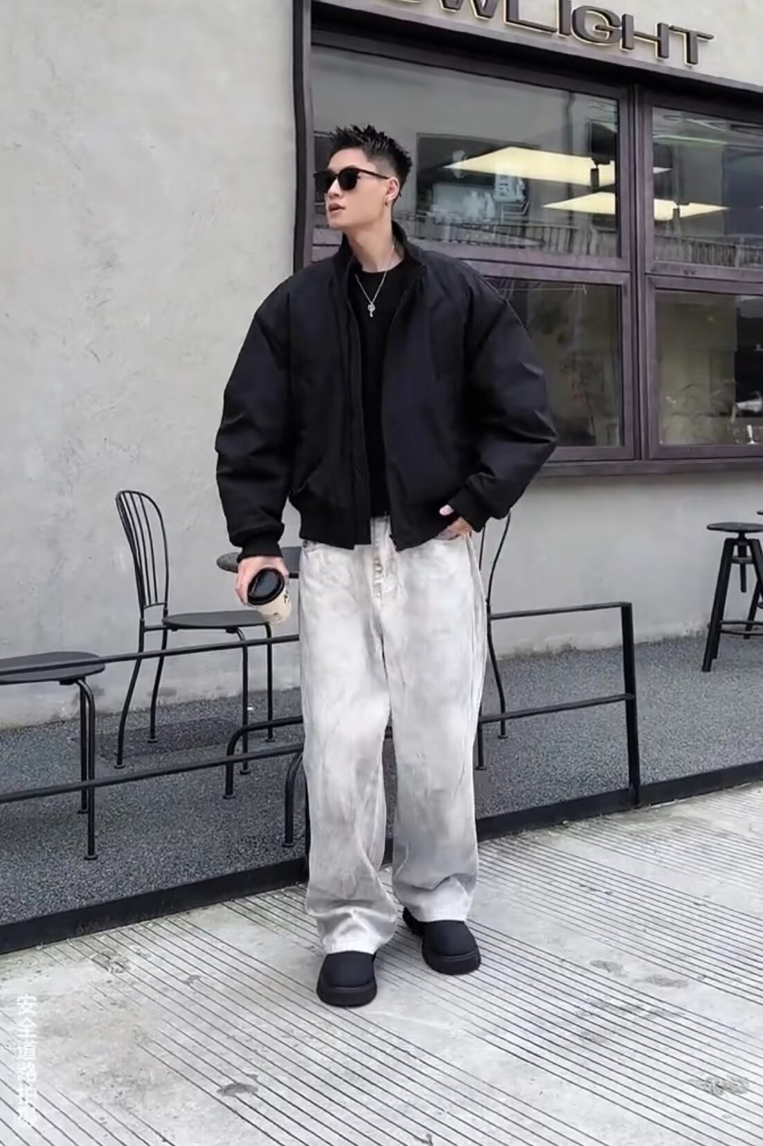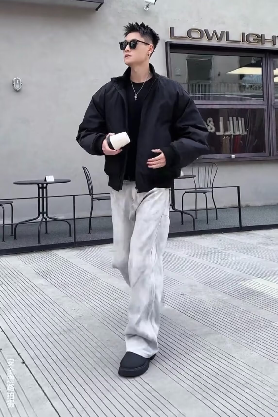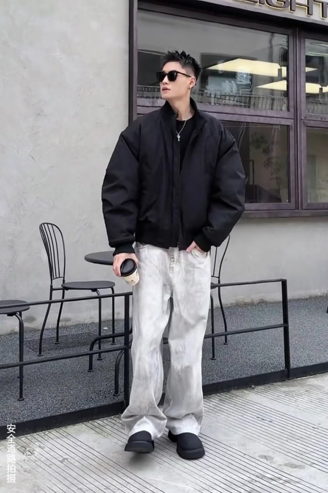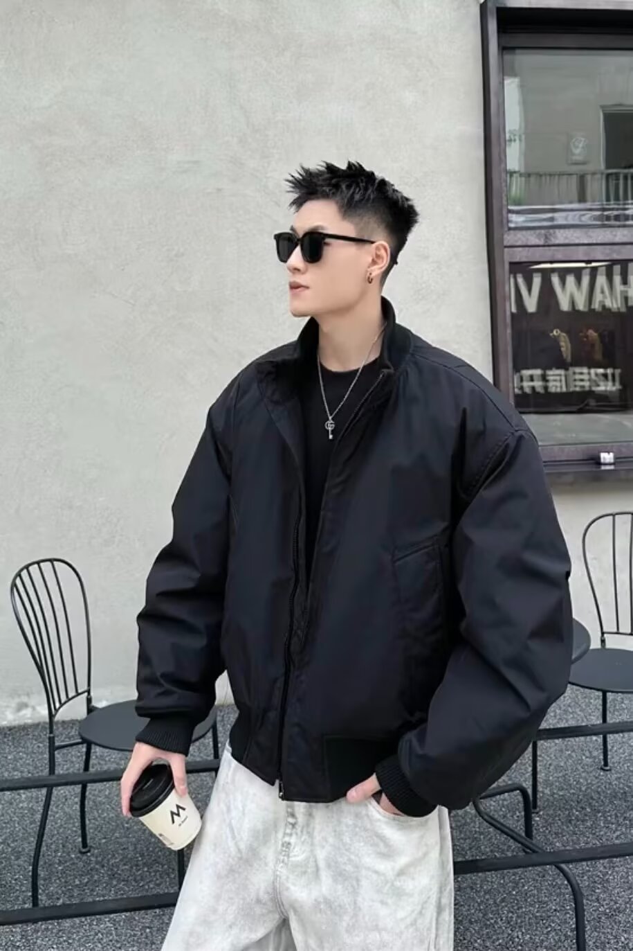 美式立领廓形短款棉服男款冬季设计感拼接飞行夹克bomber工装外套