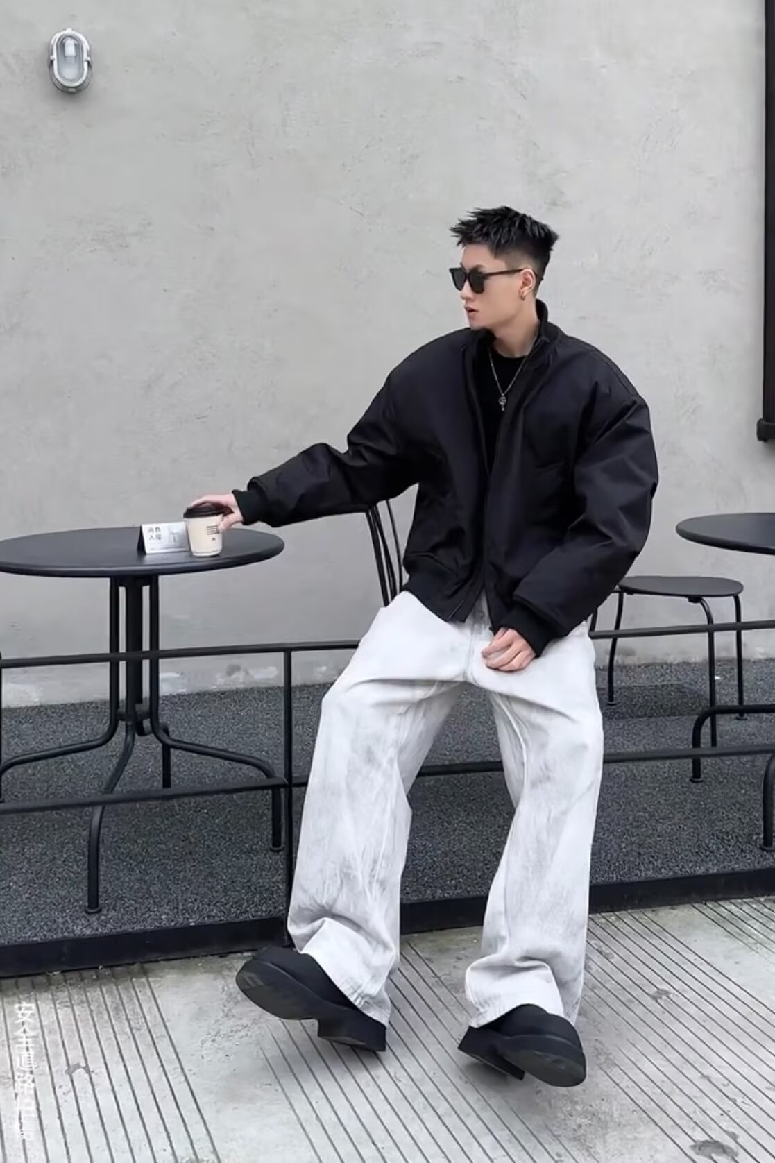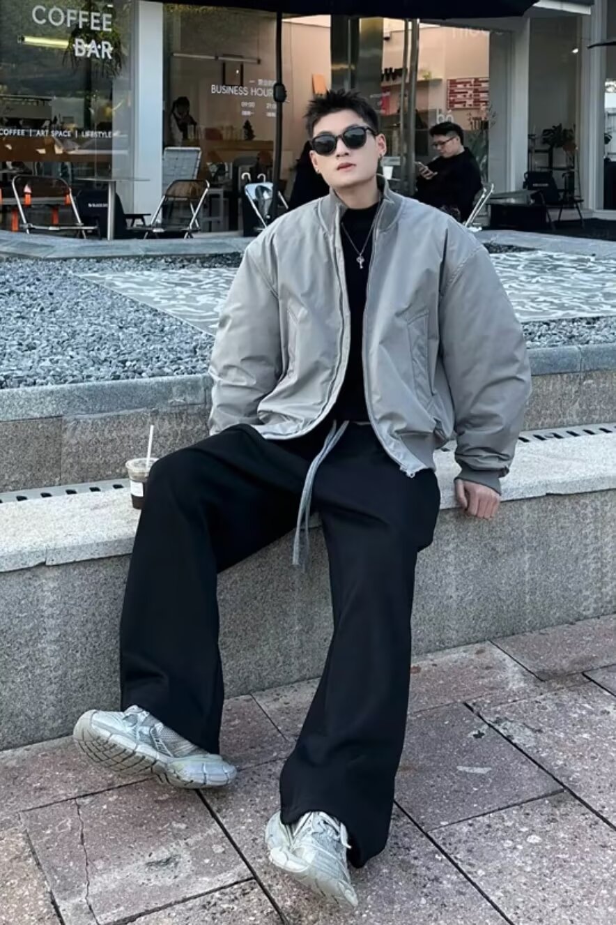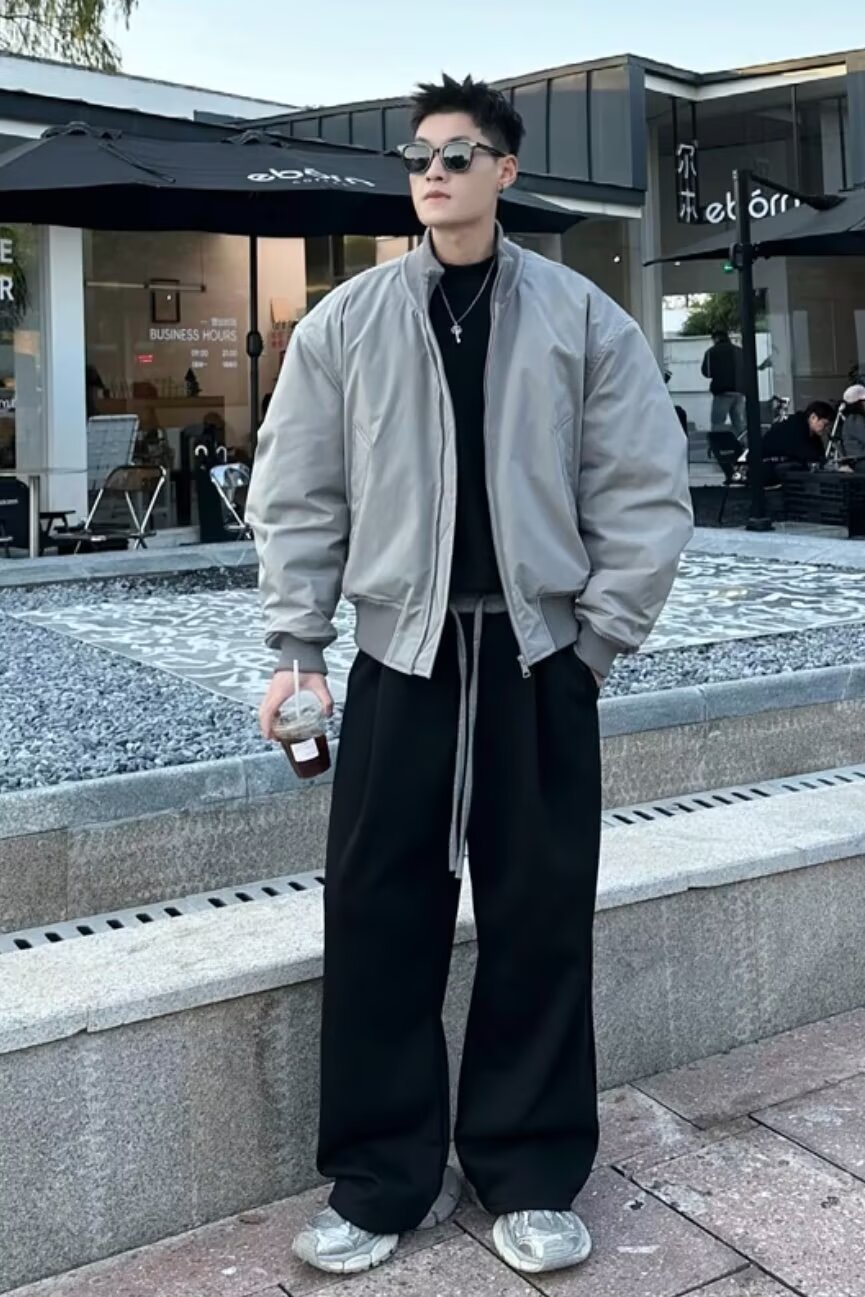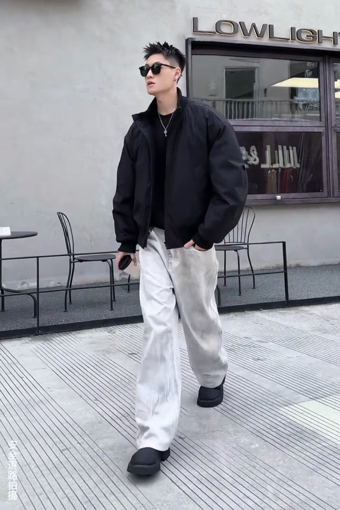 美式立领廓形短款棉服男款冬季设计感拼接飞行夹克bomber工装外套