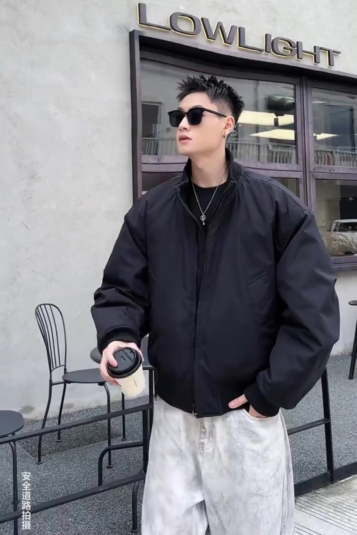 美式短款夹克棉服男冬季cleanfit廓形立领棒球服痞帅加厚保暖外套