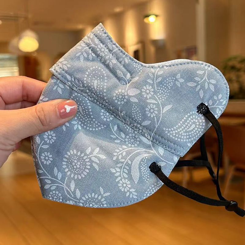 W型国風小花マスク女3d立体無勒耳騎行マスク防風日焼け止め目尻マスク卸売り