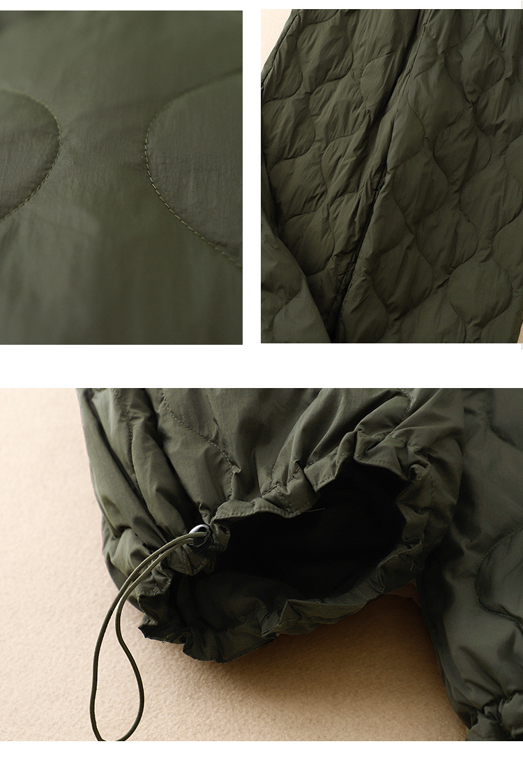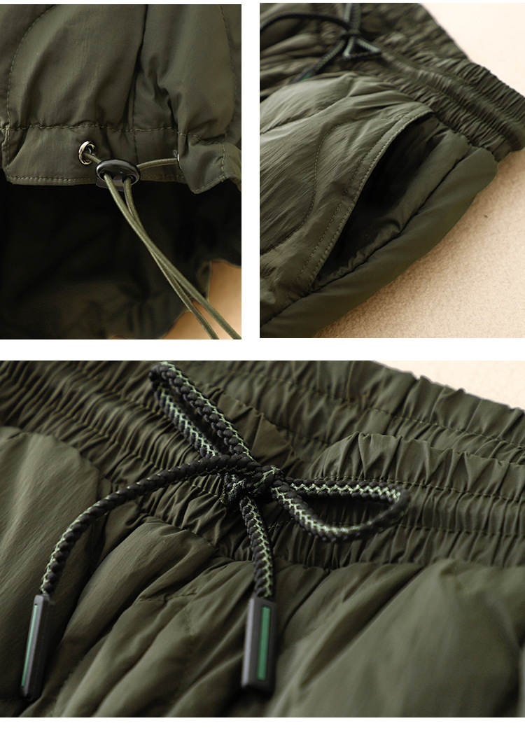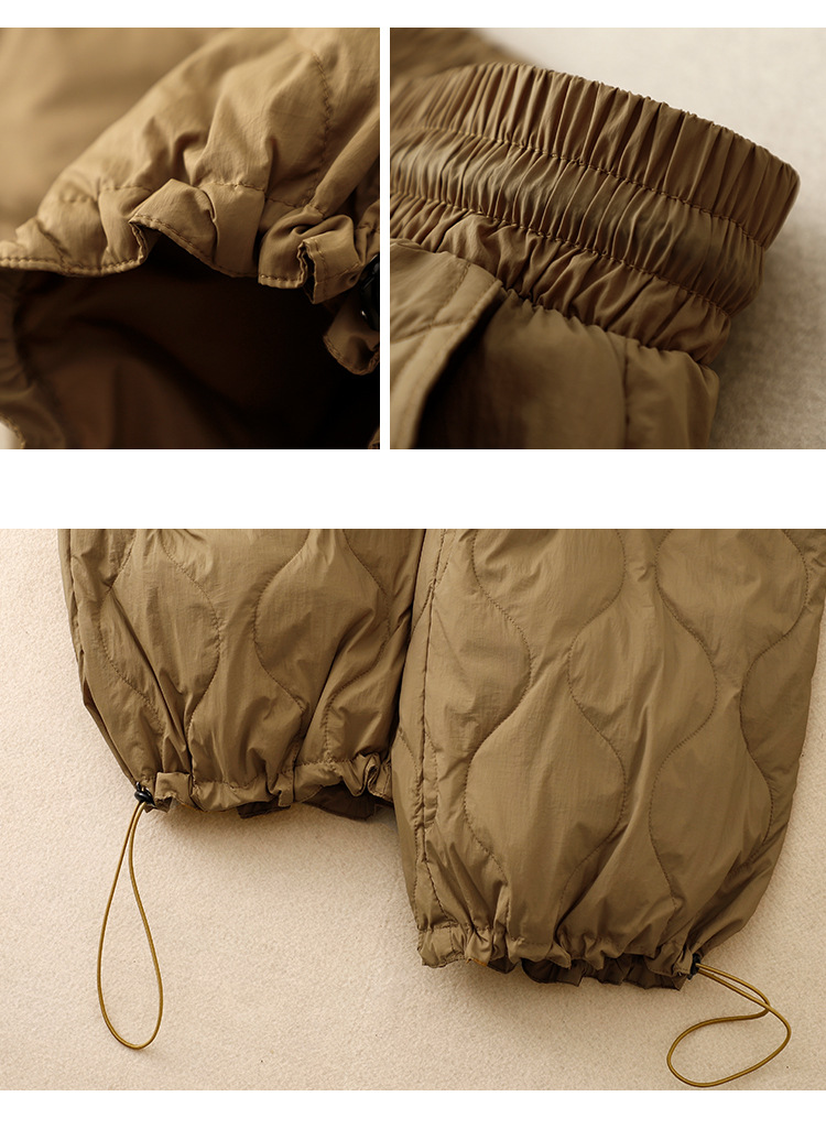 实拍2025冬季新款文艺系带松紧腰菱格压线棉裤女防风保暖长棉裤