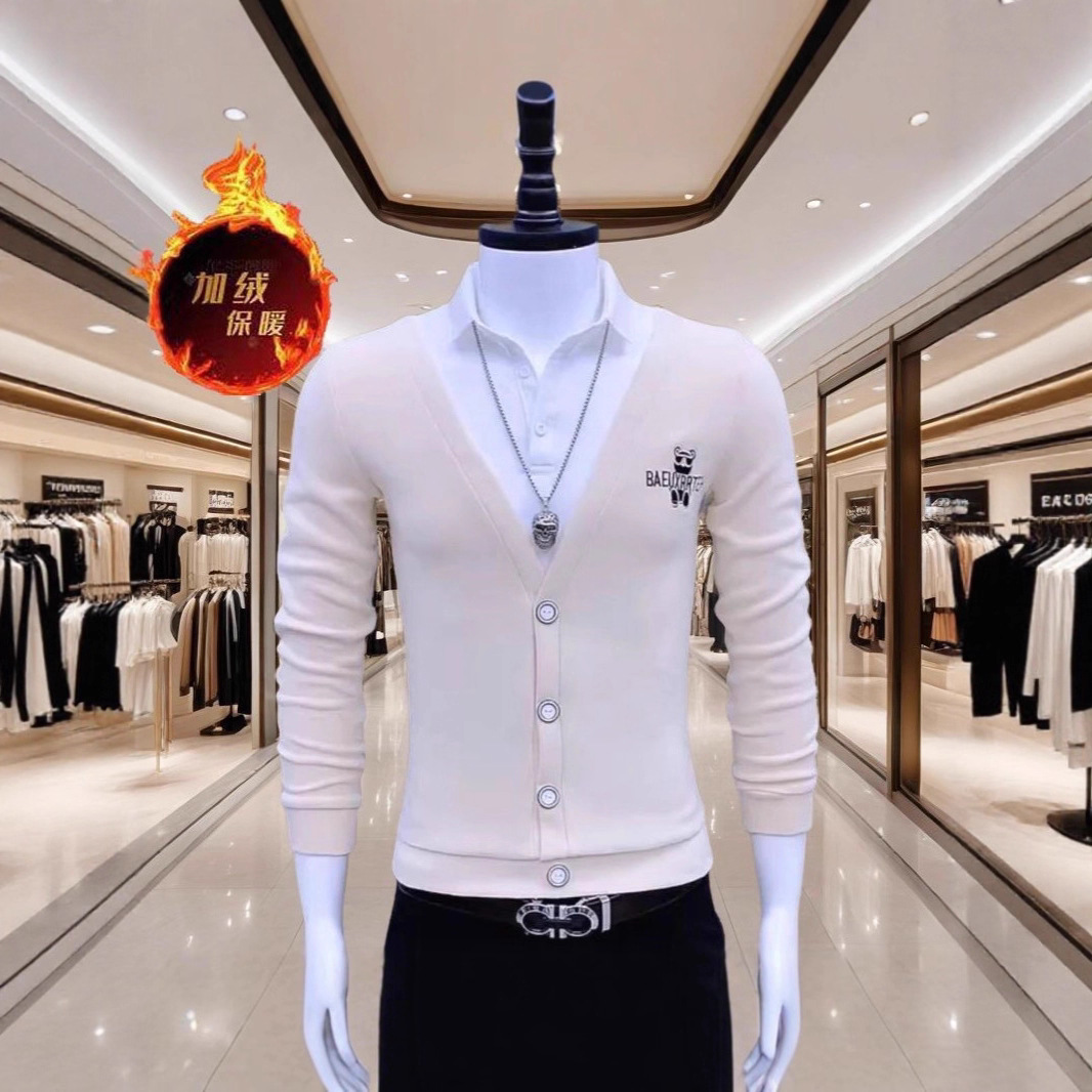 欧版假两件男士打底衫秋冬季内搭加绒保暖上衣潮牌半高领卫衣轻奢