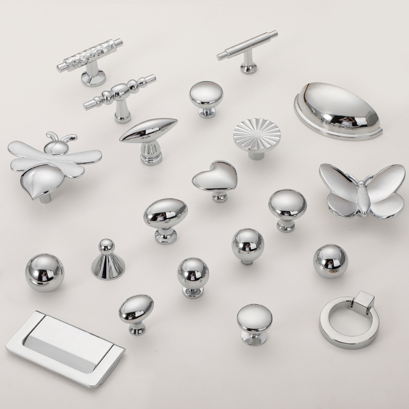 イタリアフレンチシンプルスタイルクロームブライトシルバーハンドルキャビネットドアワードローブキャビネット引き出しミニマリストキャビネット単穴小さなハンドル