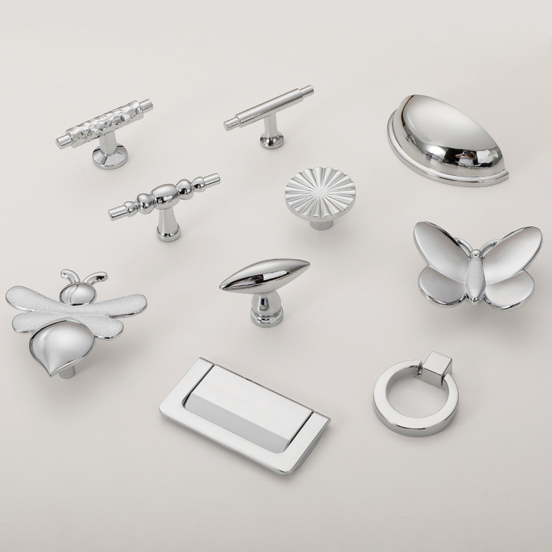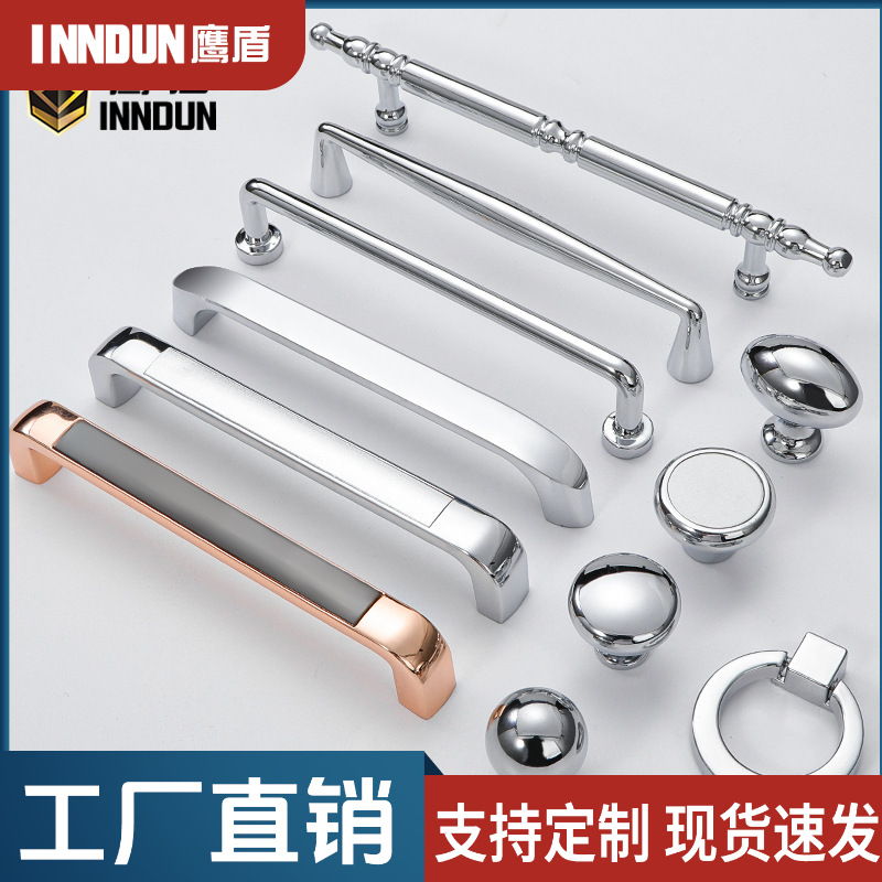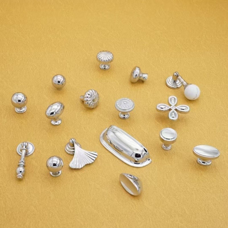 法式轻奢亮银色拉手现代简约衣柜门抽屉柜子新中式家具单孔小把手