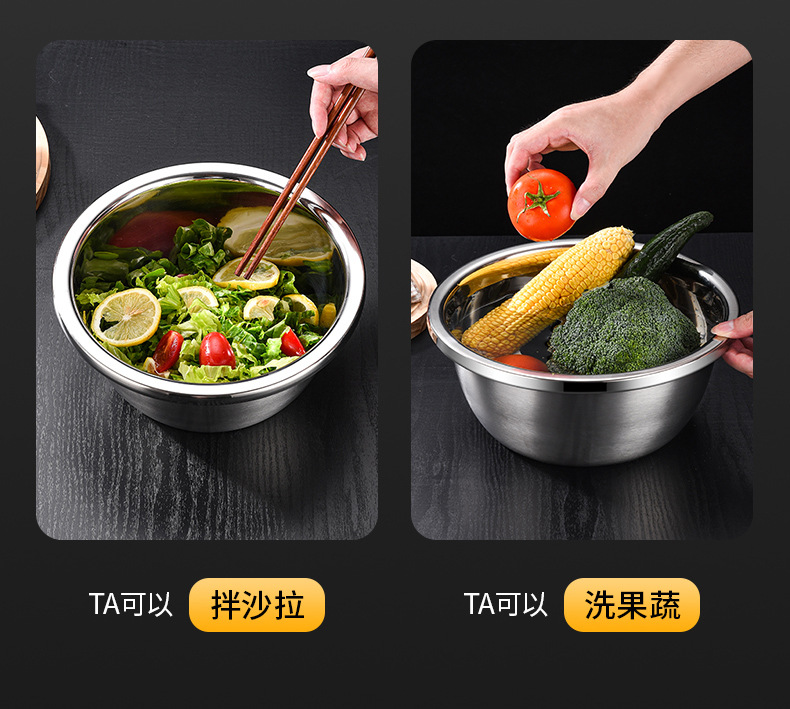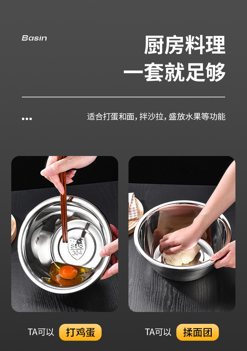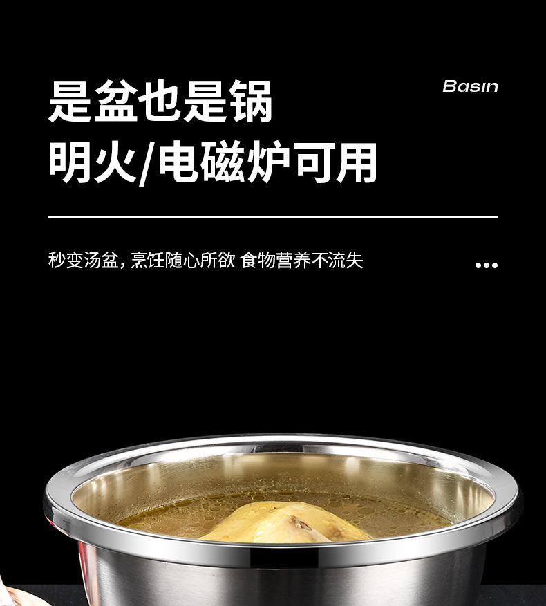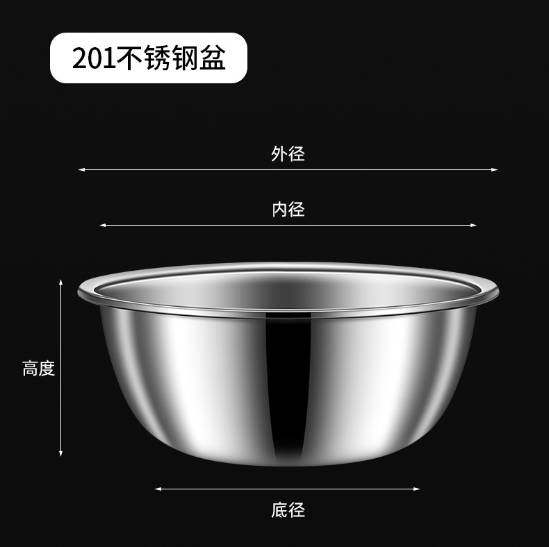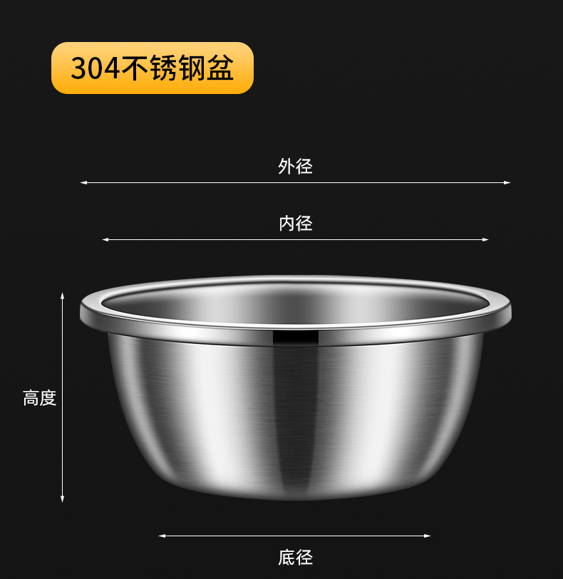 跨境304不锈钢食品级盆 特大盆子厨房打蛋和面盆洗菜烘焙特厚汤盆