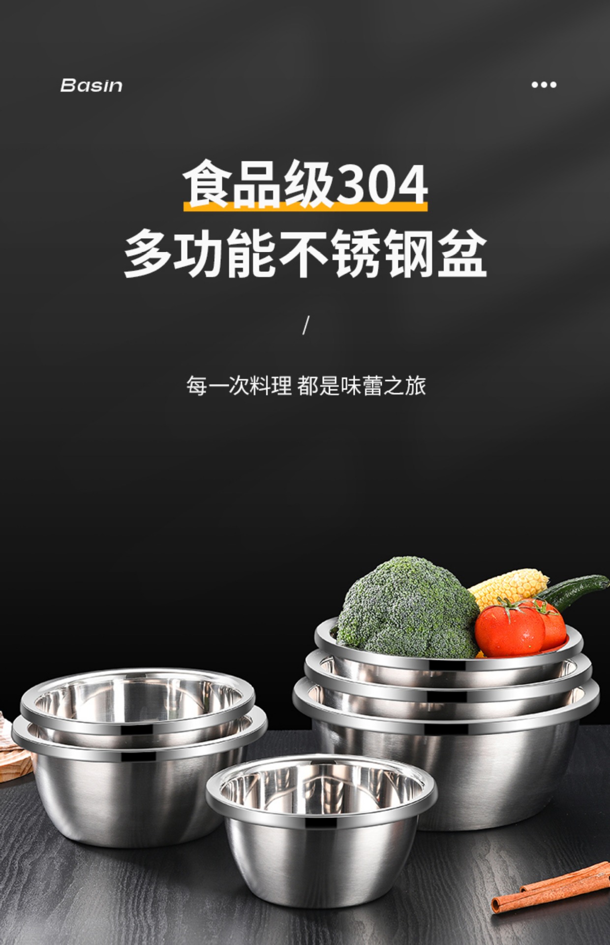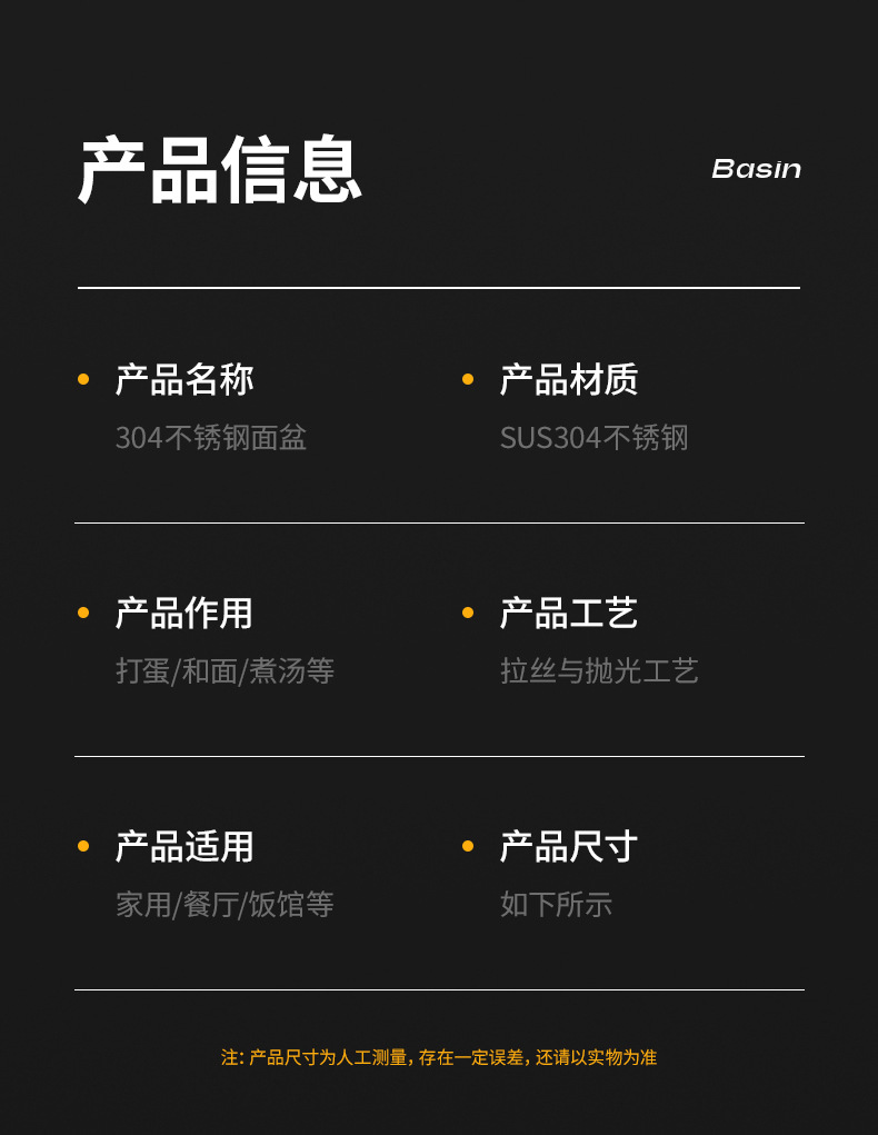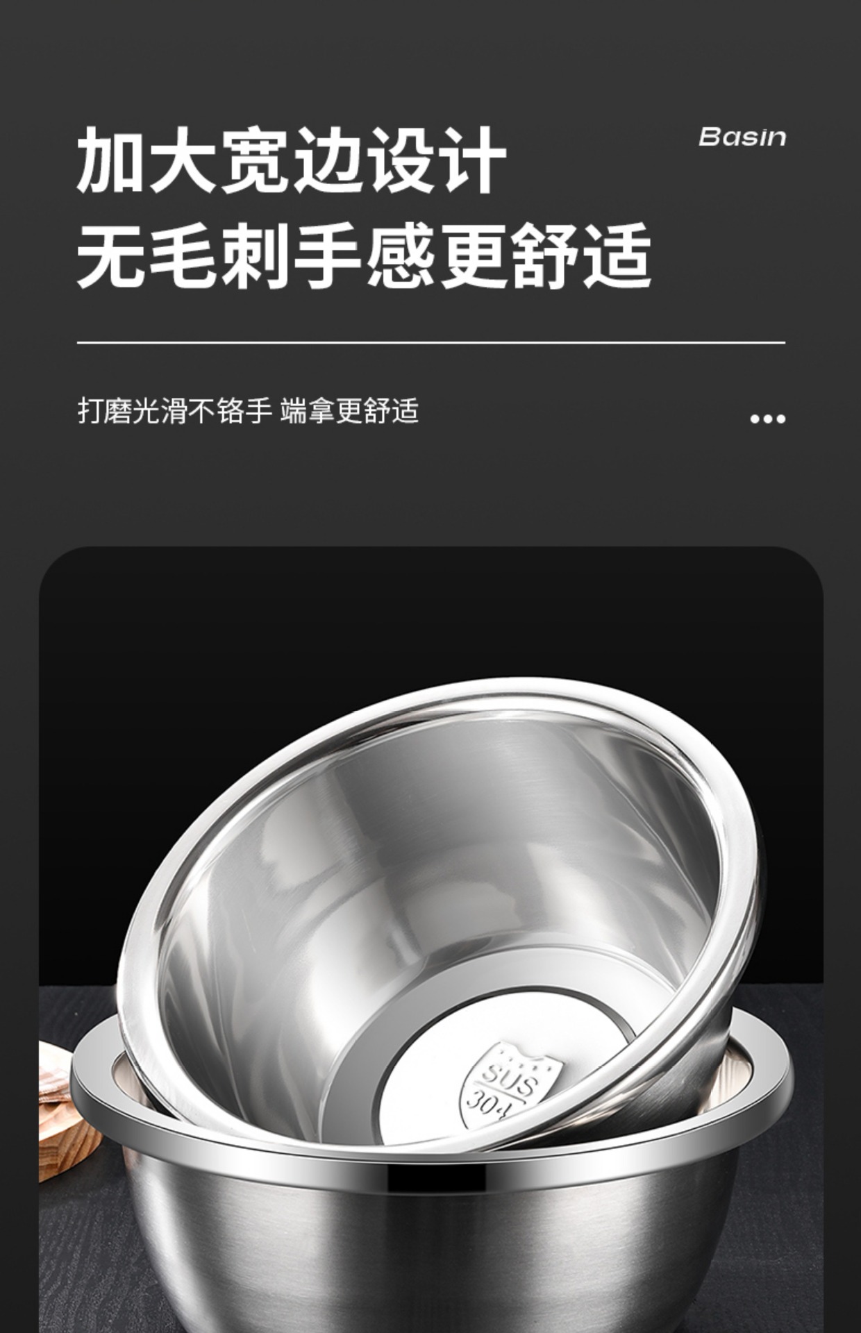 跨境304不锈钢食品级盆 特大盆子厨房打蛋和面盆洗菜烘焙特厚汤盆
