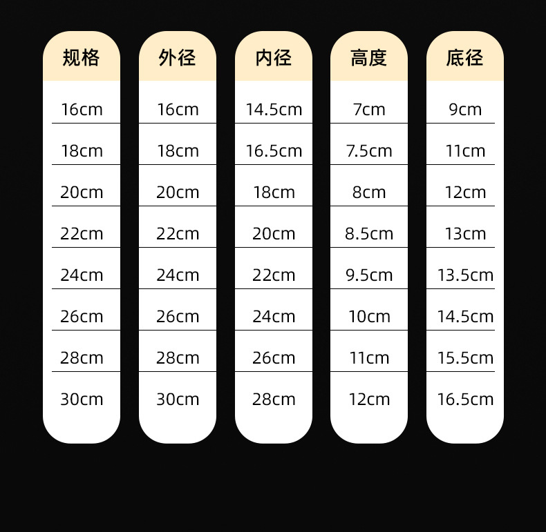 规格 304【18CM】,304【20CM】,304【22CM】,304【24CM】,304【26CM】,304【28CM】,304【30CM】,304【32CM】,304【34CM】,304【36CM】,304【38CM】,304【40CM】,201【16CM】,201【18CM】,201【20CM】,201【22CM】,201【24CM】,201【26CM】,201【28CM】,201【30CM】,201【32CM】,201【34CM】,201【36CM】,201【38CM】,201【40CM】
