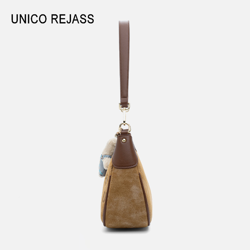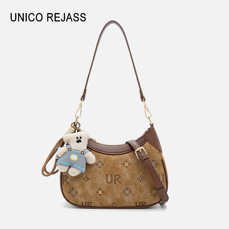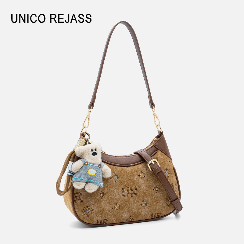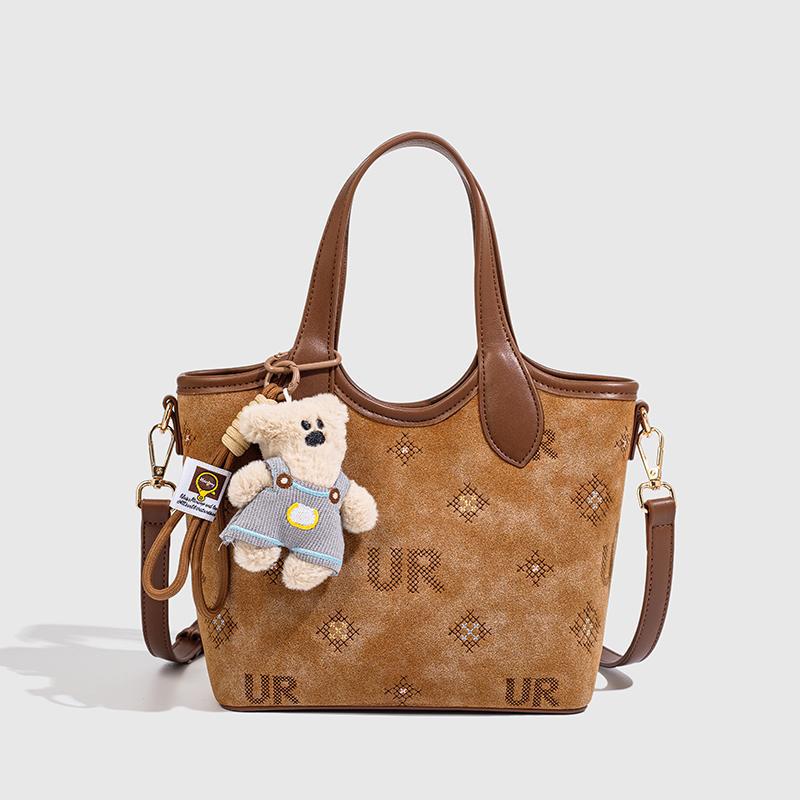 広州工場在庫あり 2025 新デザイン縦型小型スクエアバッグ、ぬいぐるみペンダント付きクロスボディバッグ 60009-14