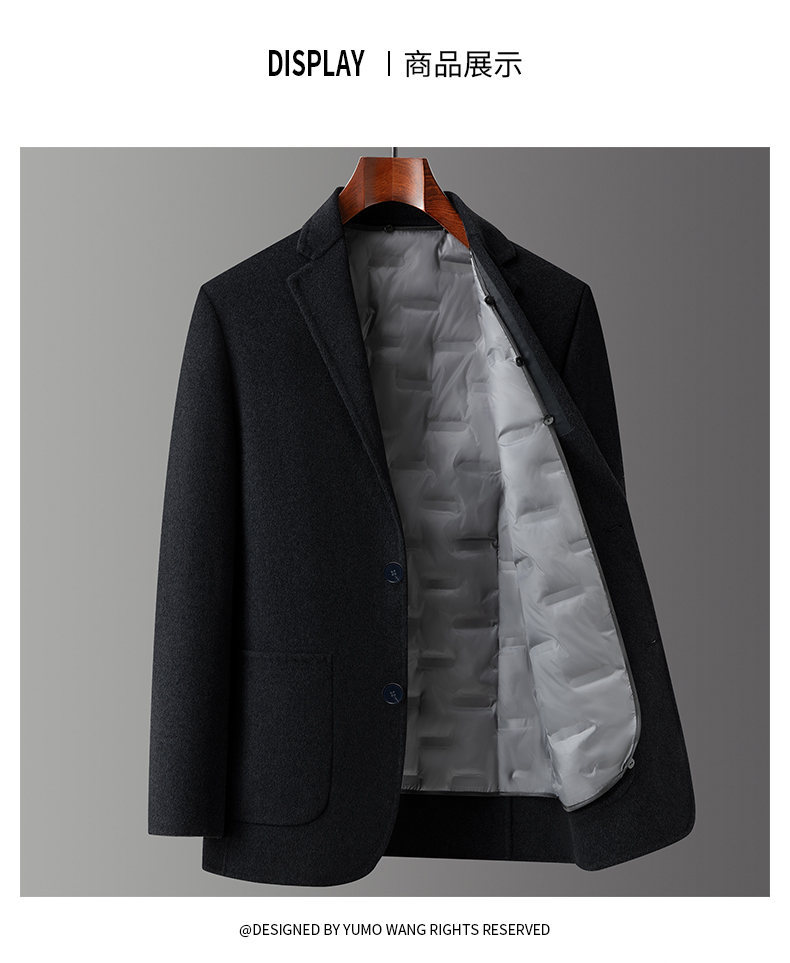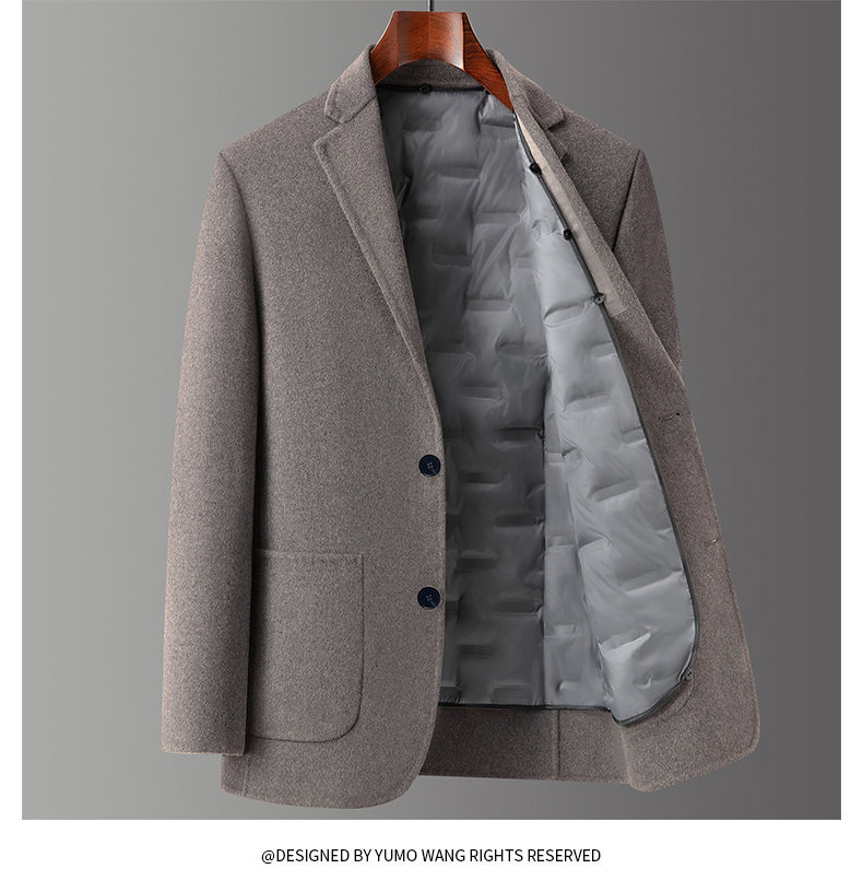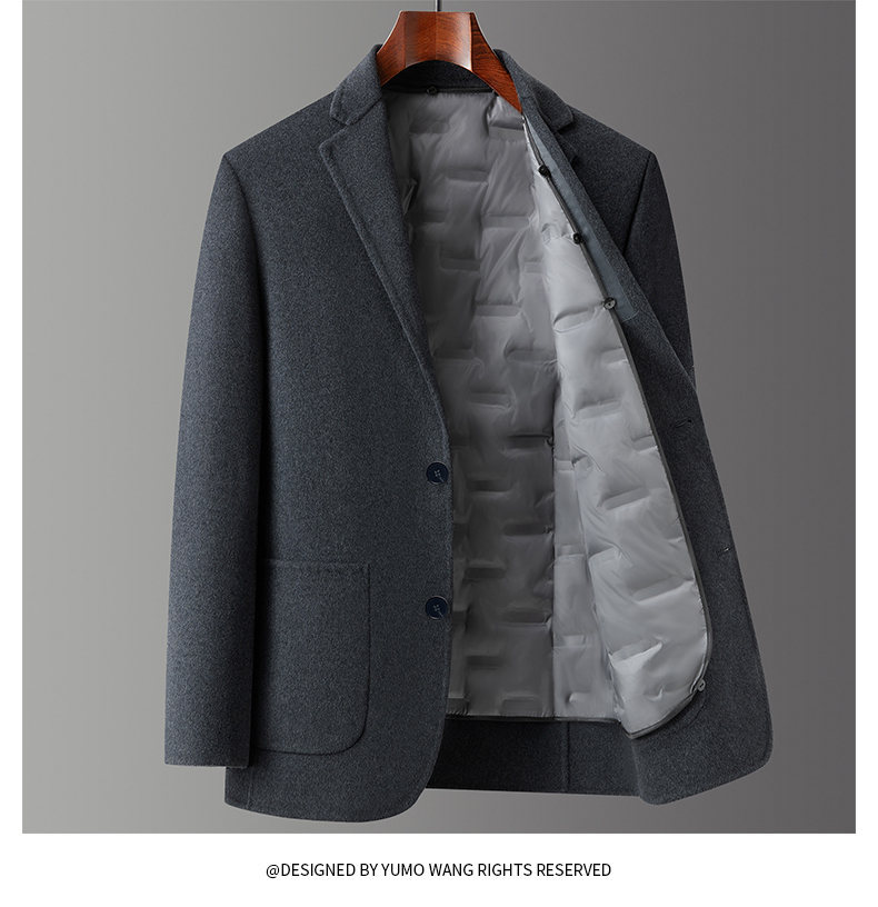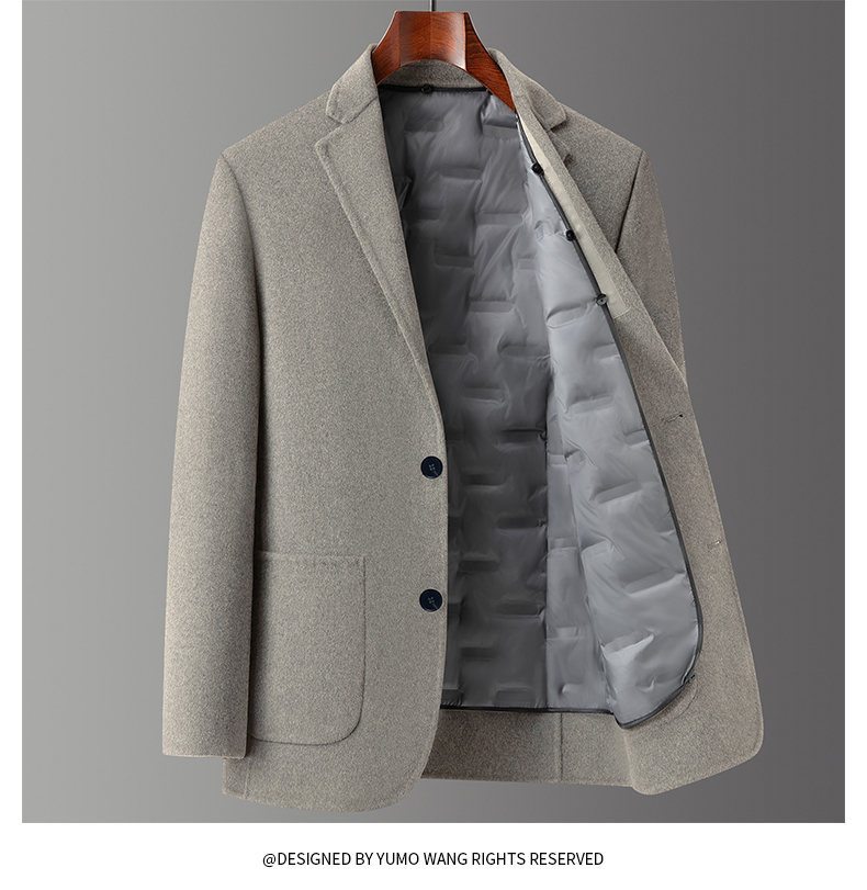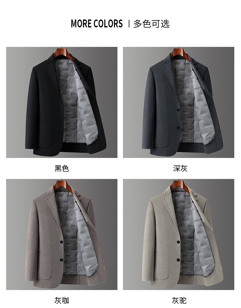 男士羊毛呢西服2025年秋冬新款男装中年商务休闲鹅绒内胆西装外套