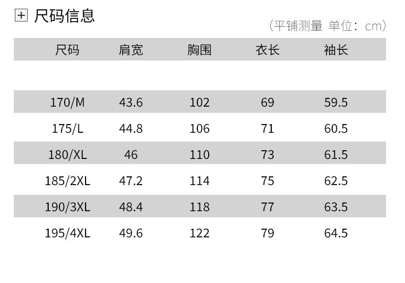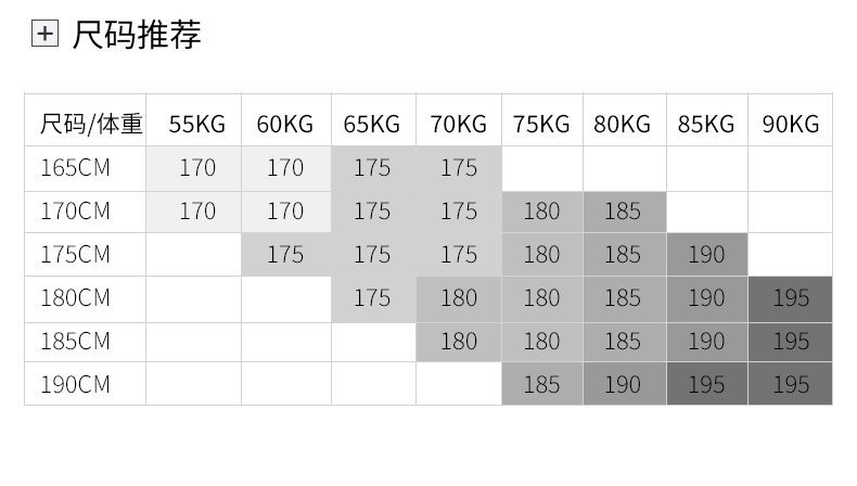 尺码 170,175,180,185,190,195