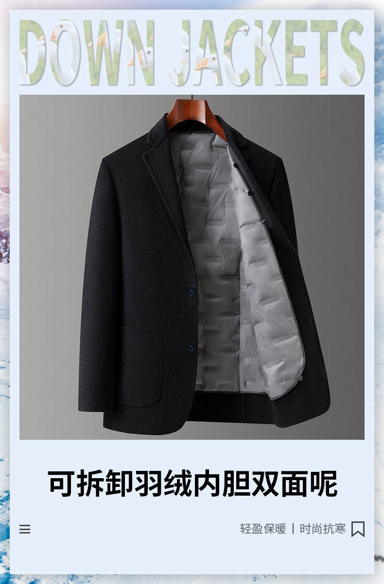 男士羊毛呢羽绒西服2025秋冬新款男装中年商务休闲可脱卸内胆西装