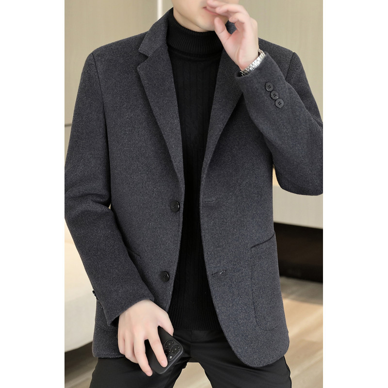 男士双面羊毛呢西服2025年秋冬新款男装中年商务休闲百搭西装外套