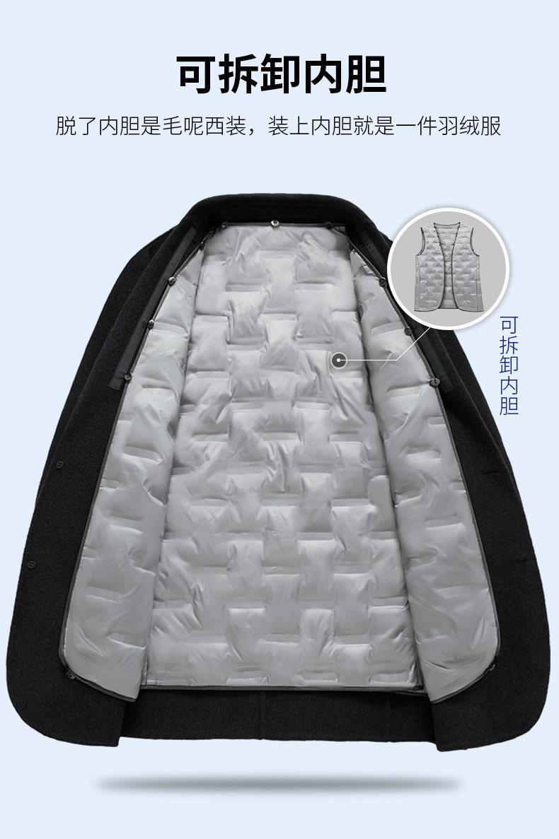男士羊毛呢西服2025年秋冬新款男装中年商务休闲脱卸鹅绒内胆外套