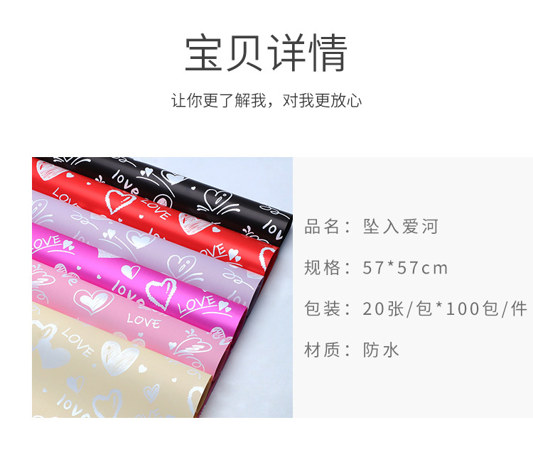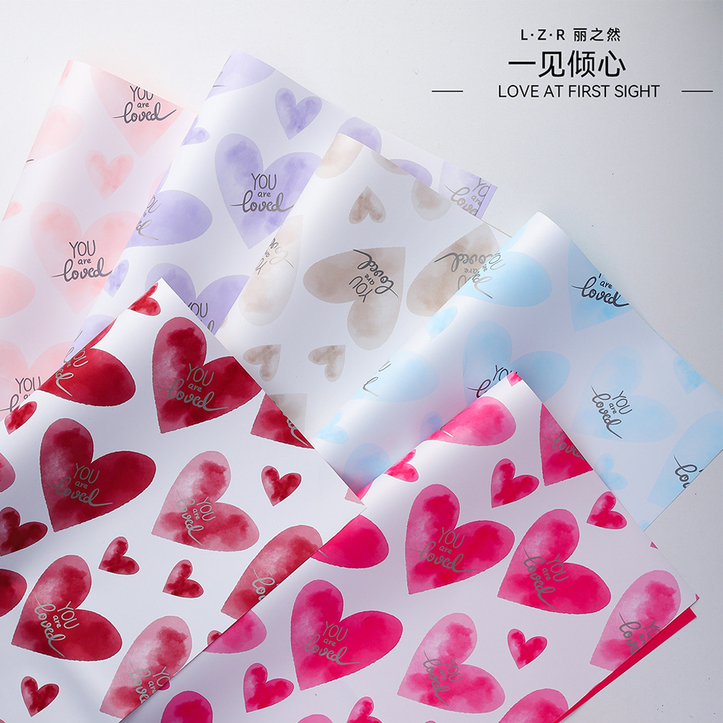 璀璨 坠入爱河鲜花包装纸塑料防水爱心love浪漫礼物纸花店花艺师