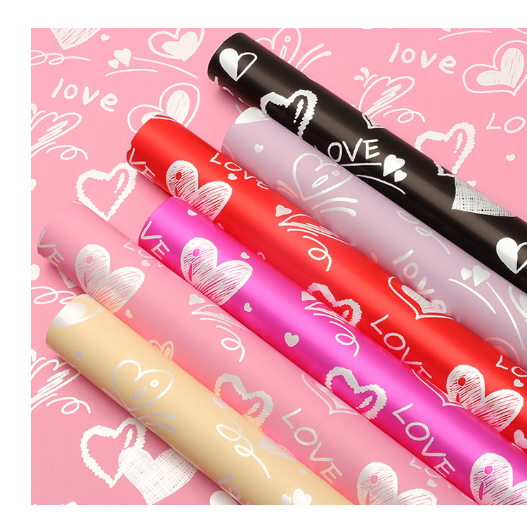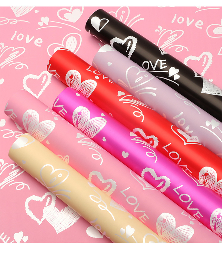 跨境专供七夕爱意满满鲜花包装纸花店花艺礼品包装纸花束包花材料