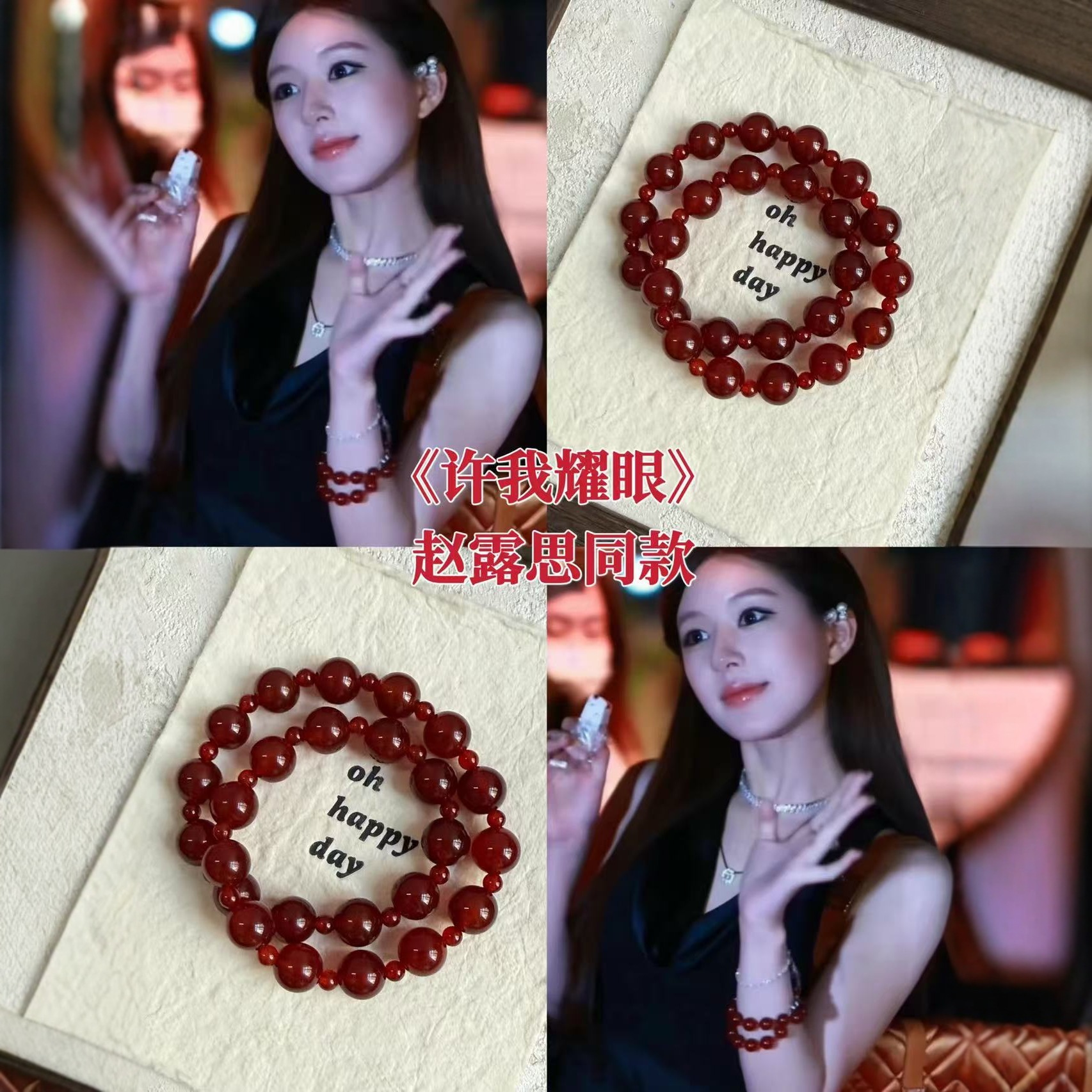 许我耀眼赵思露同款红玛瑙手串轻奢精致天然玛瑙手链单圈双圈手饰
