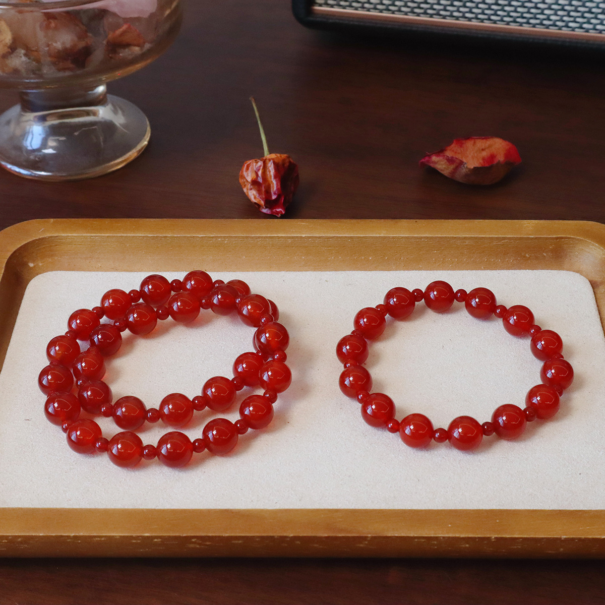 许我耀眼许研赵露丝同款10MM天然冰透红玛瑙双圈手串高级感