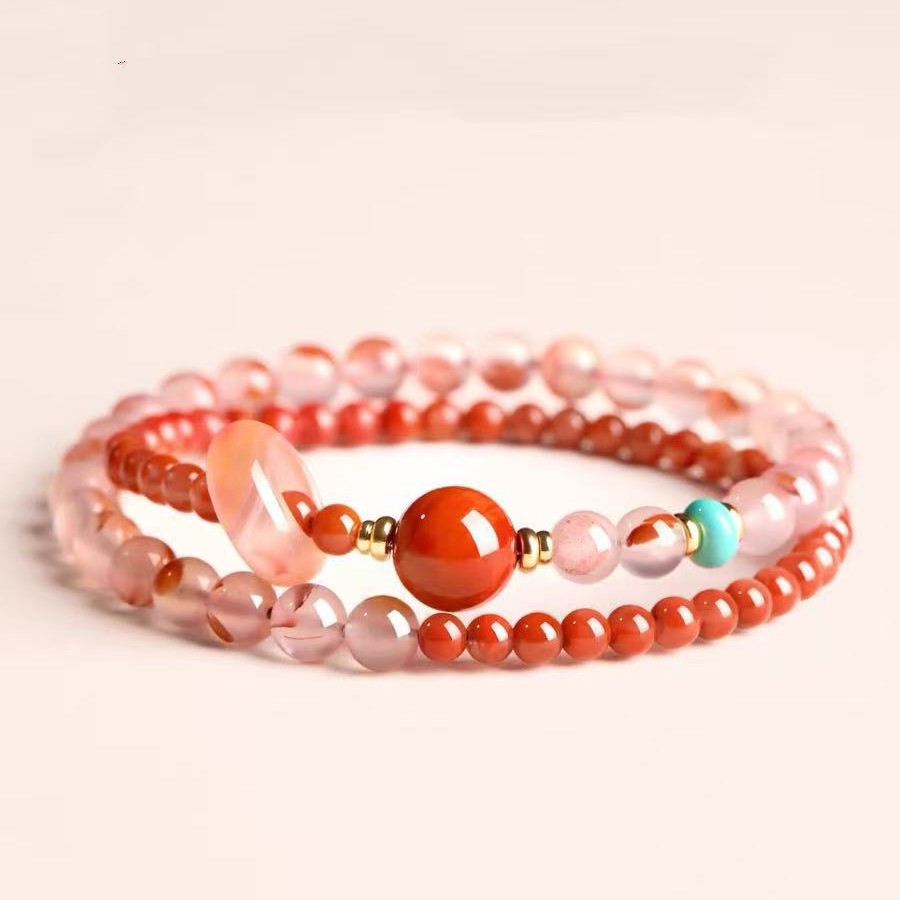 天然冰飘红玛瑙手链南红手串双拼盐源跑环叠戴手饰生日礼物送女友