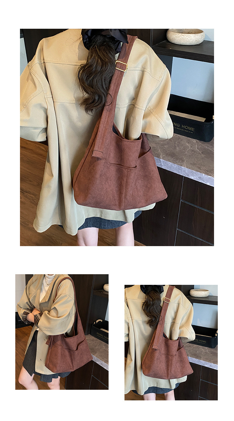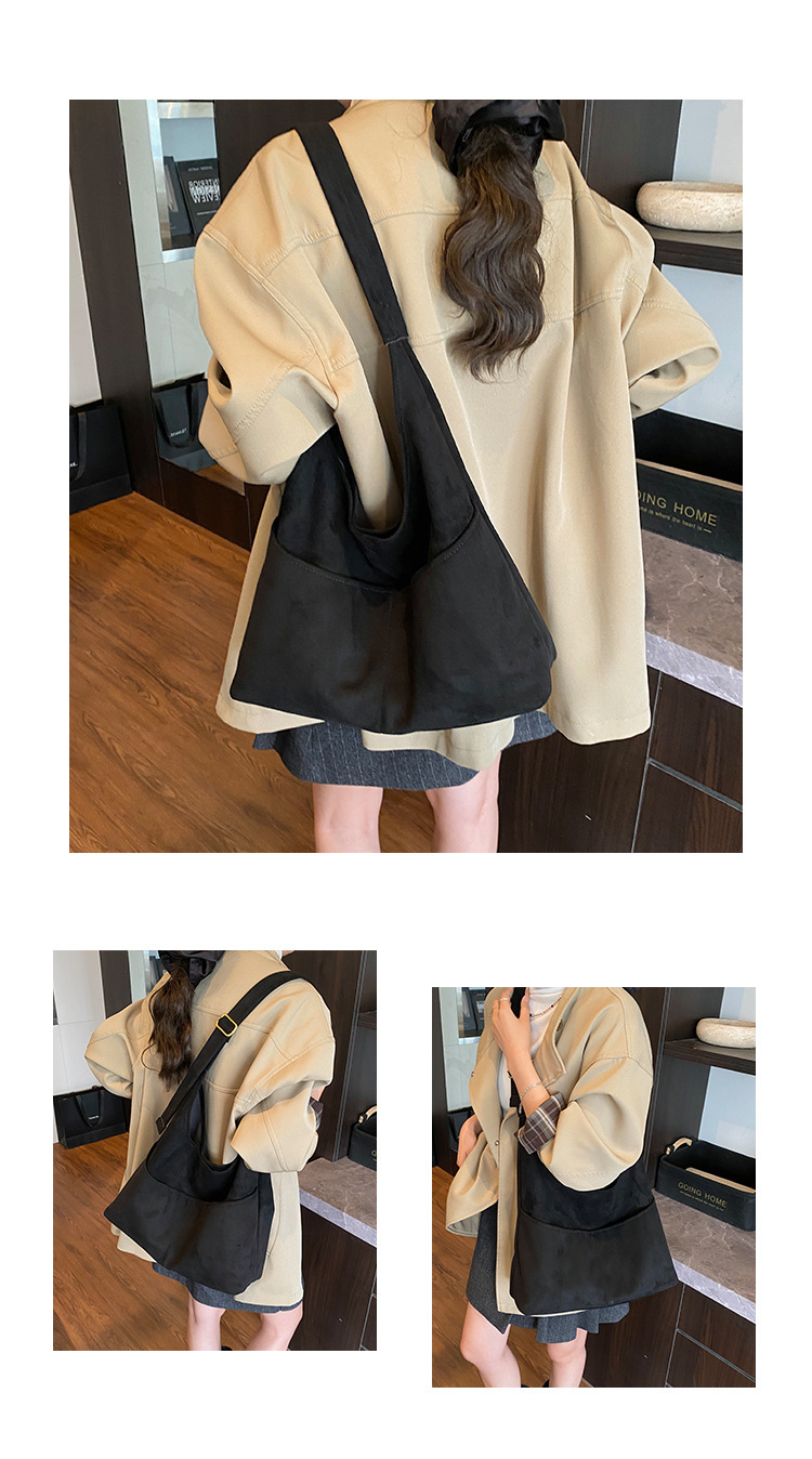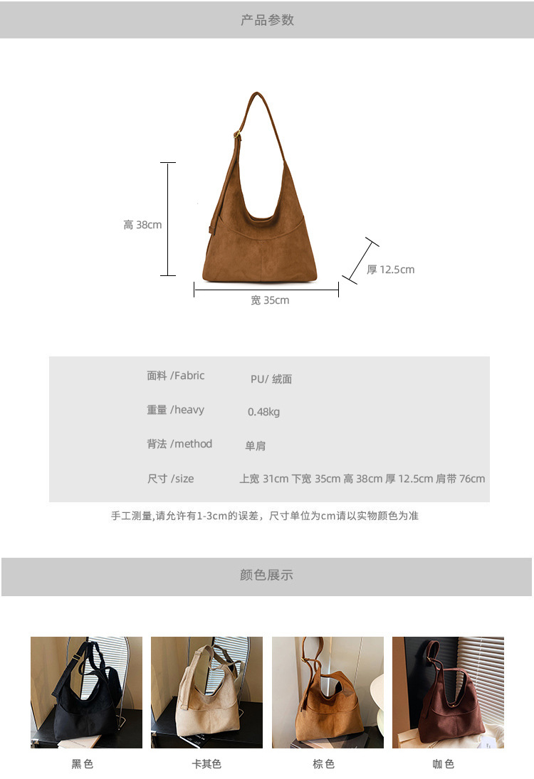 国境を越えたスエードのバッグ女性秋の新しいファッション行純色シングルバッグカジュアル大容量通勤バッグ