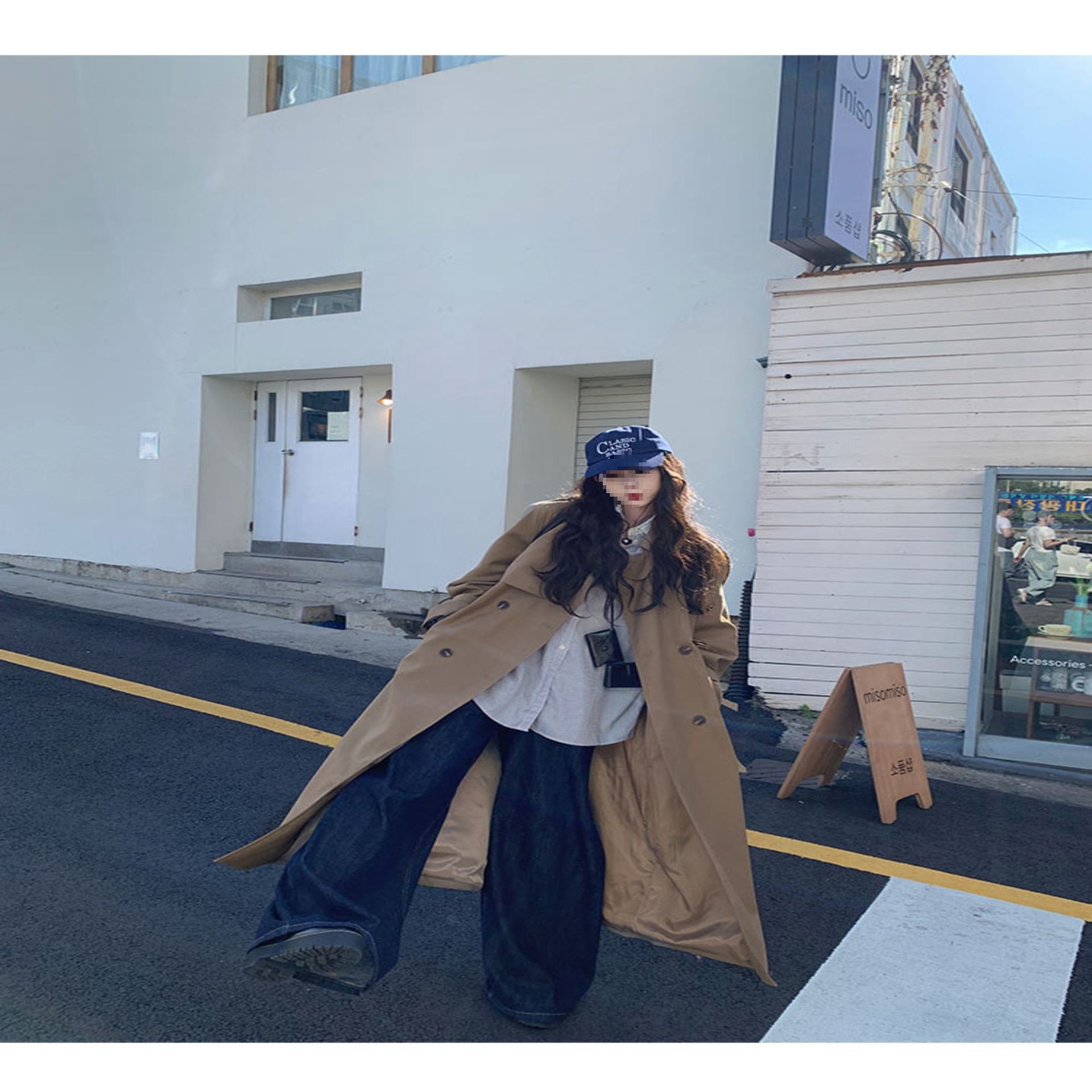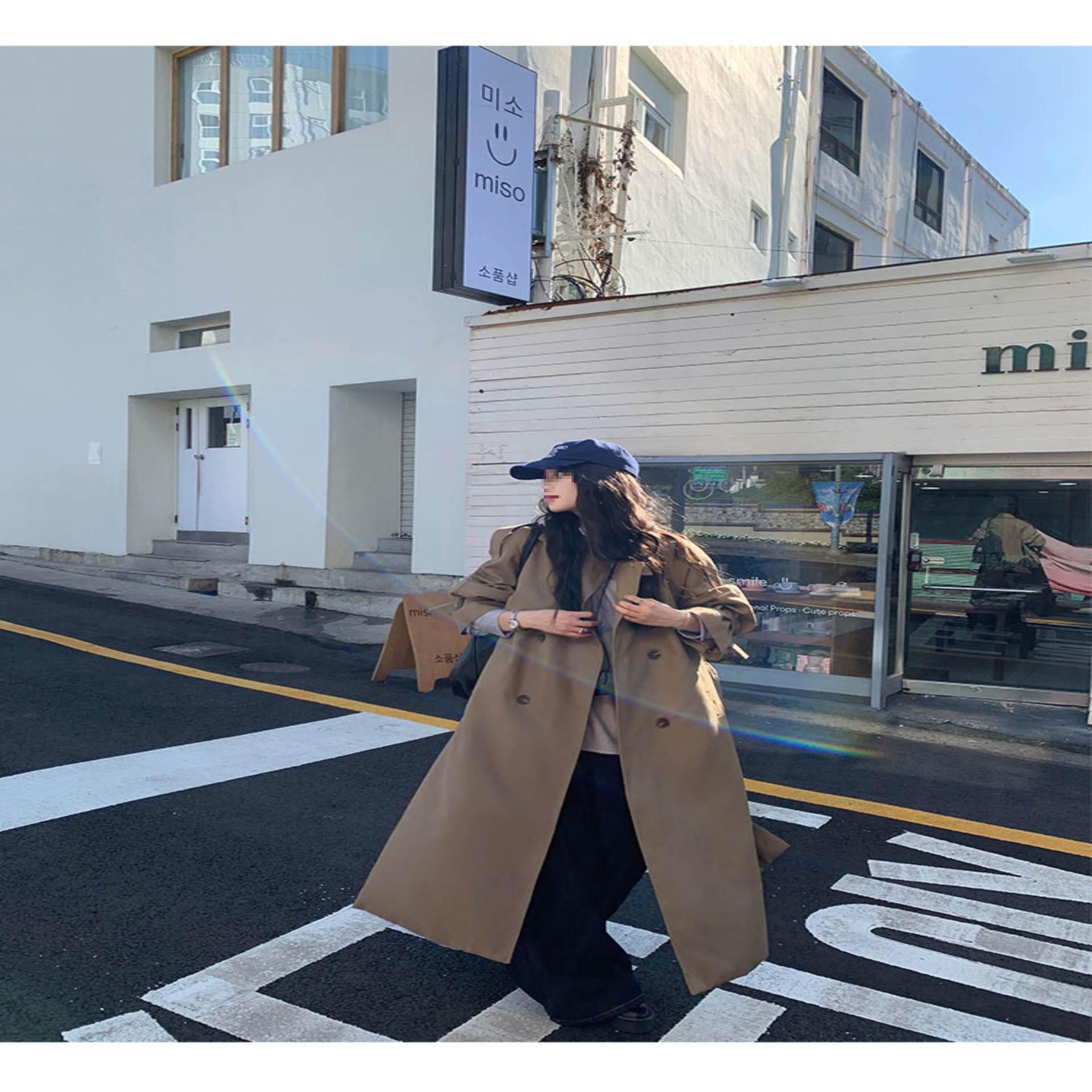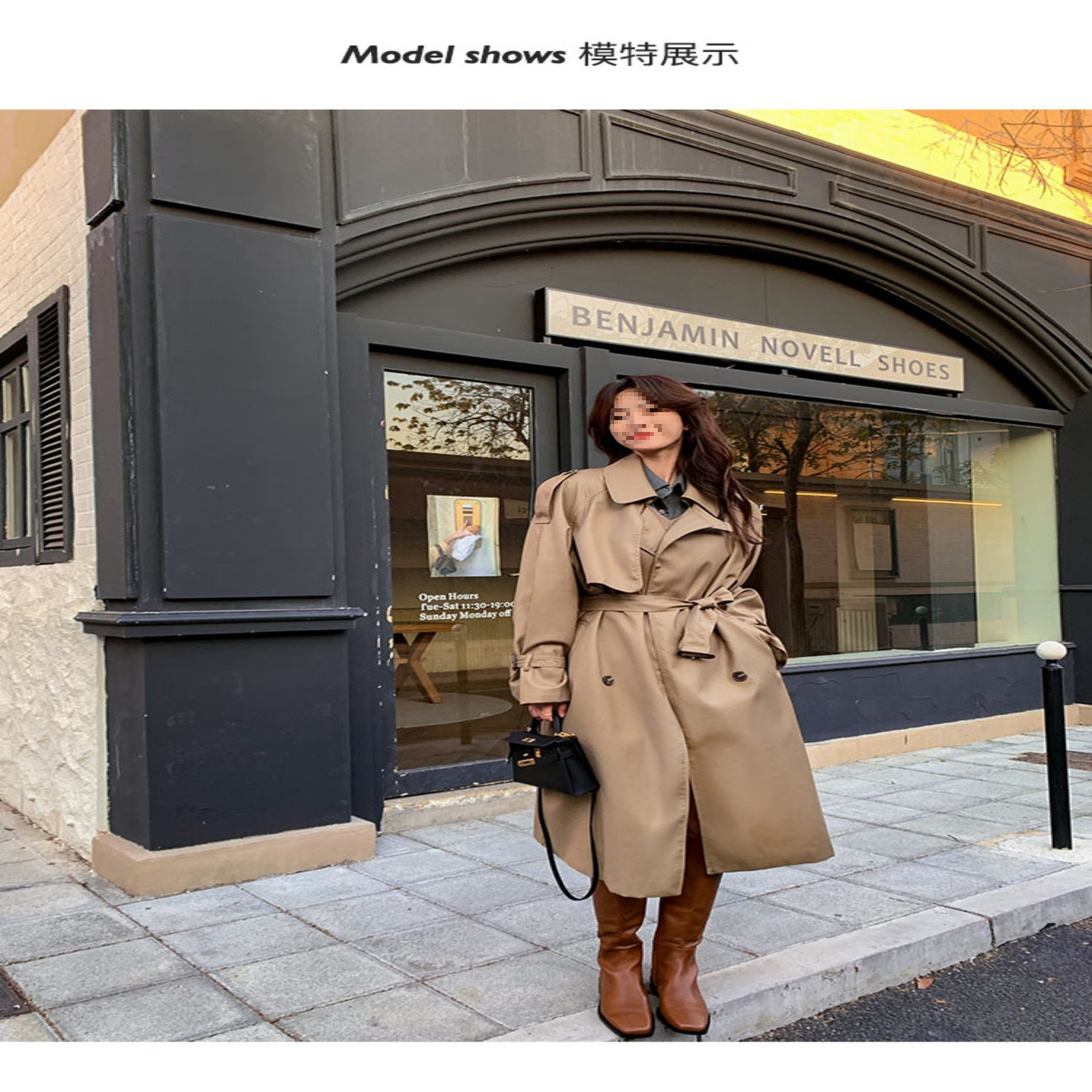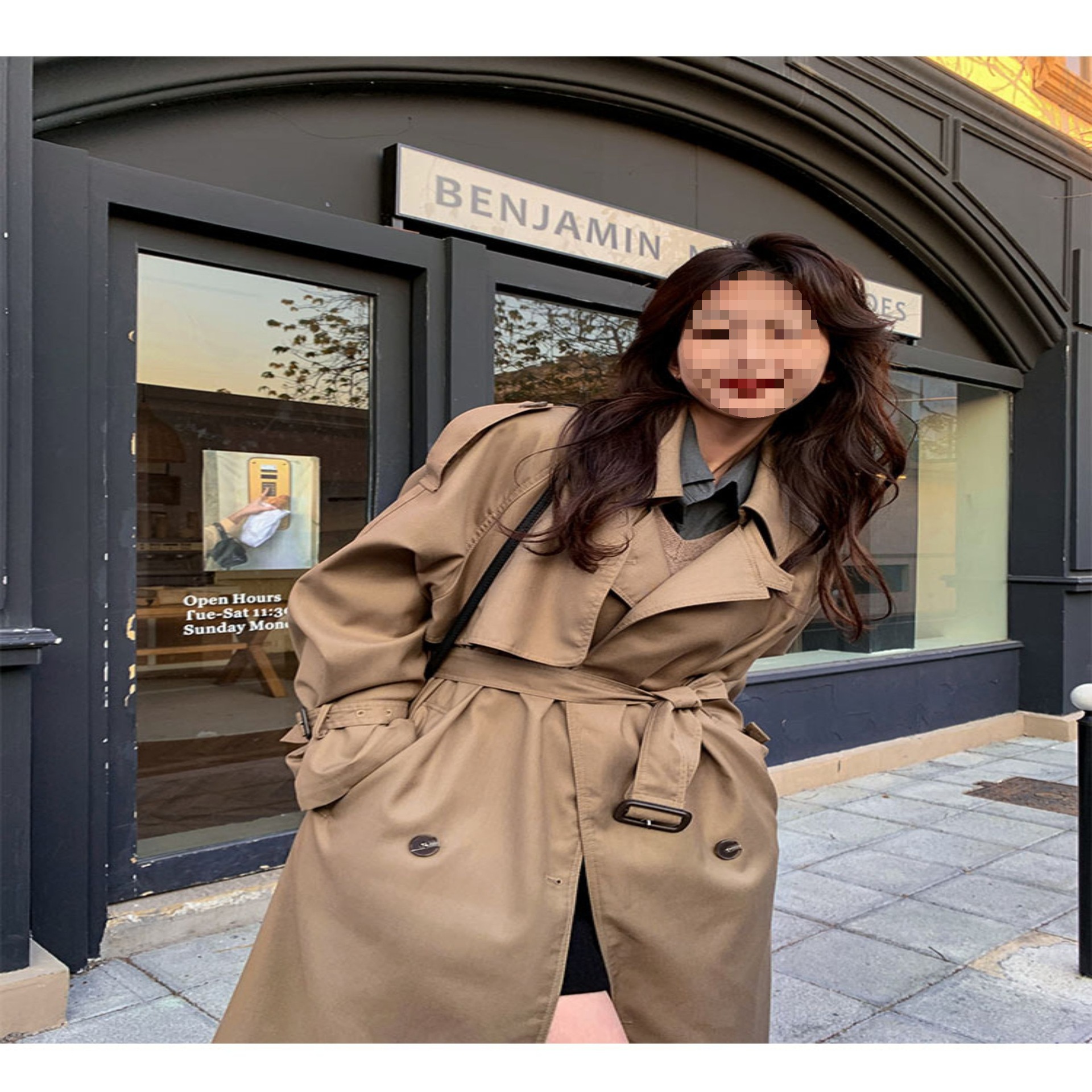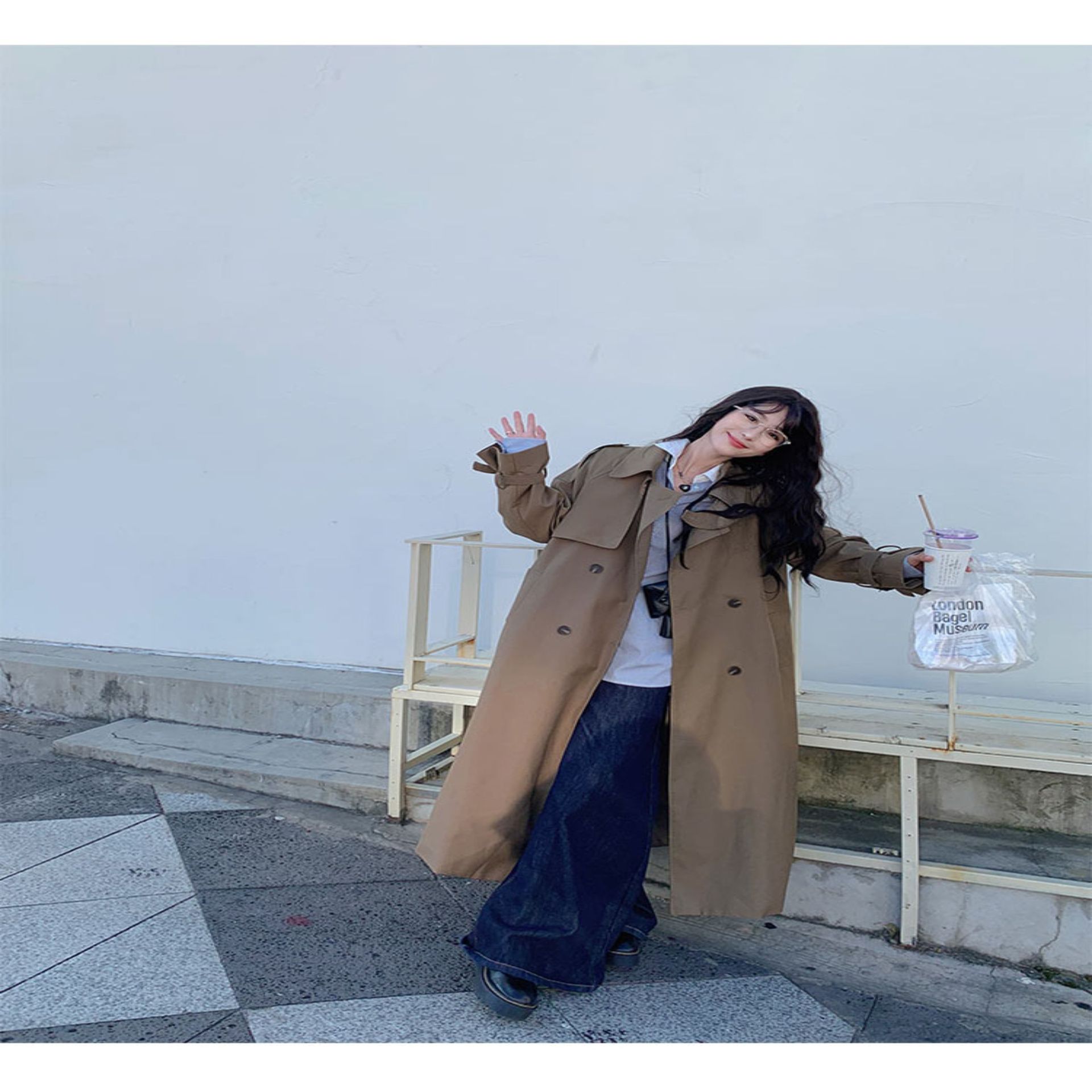 夏蓝汐雨SMBL RAIN宽松系带过膝长款大衣复古显瘦英伦风衣外套女