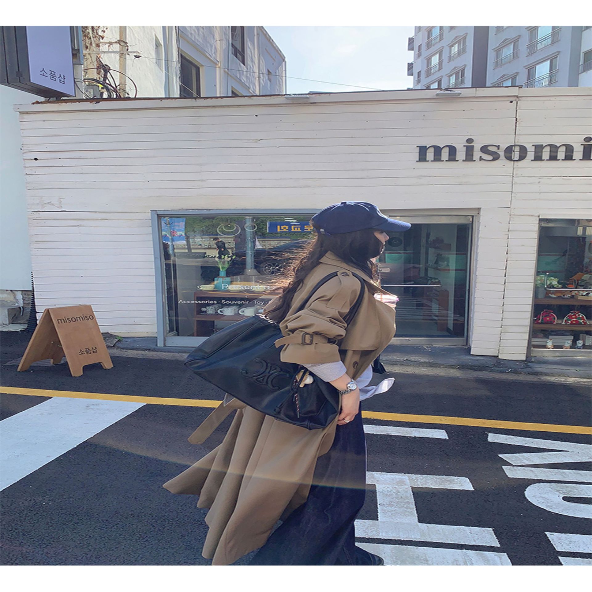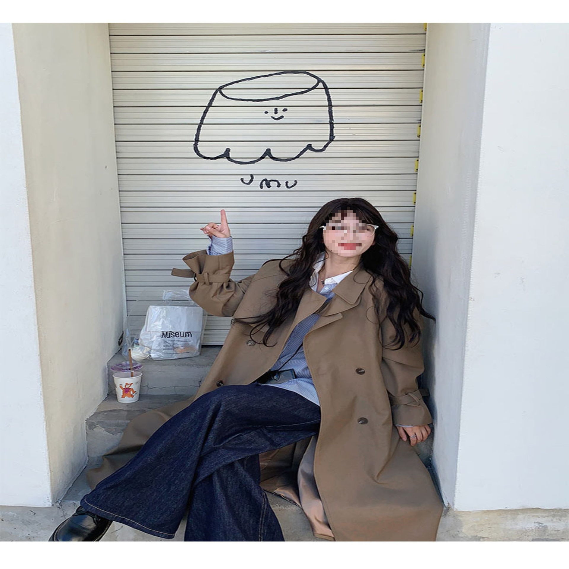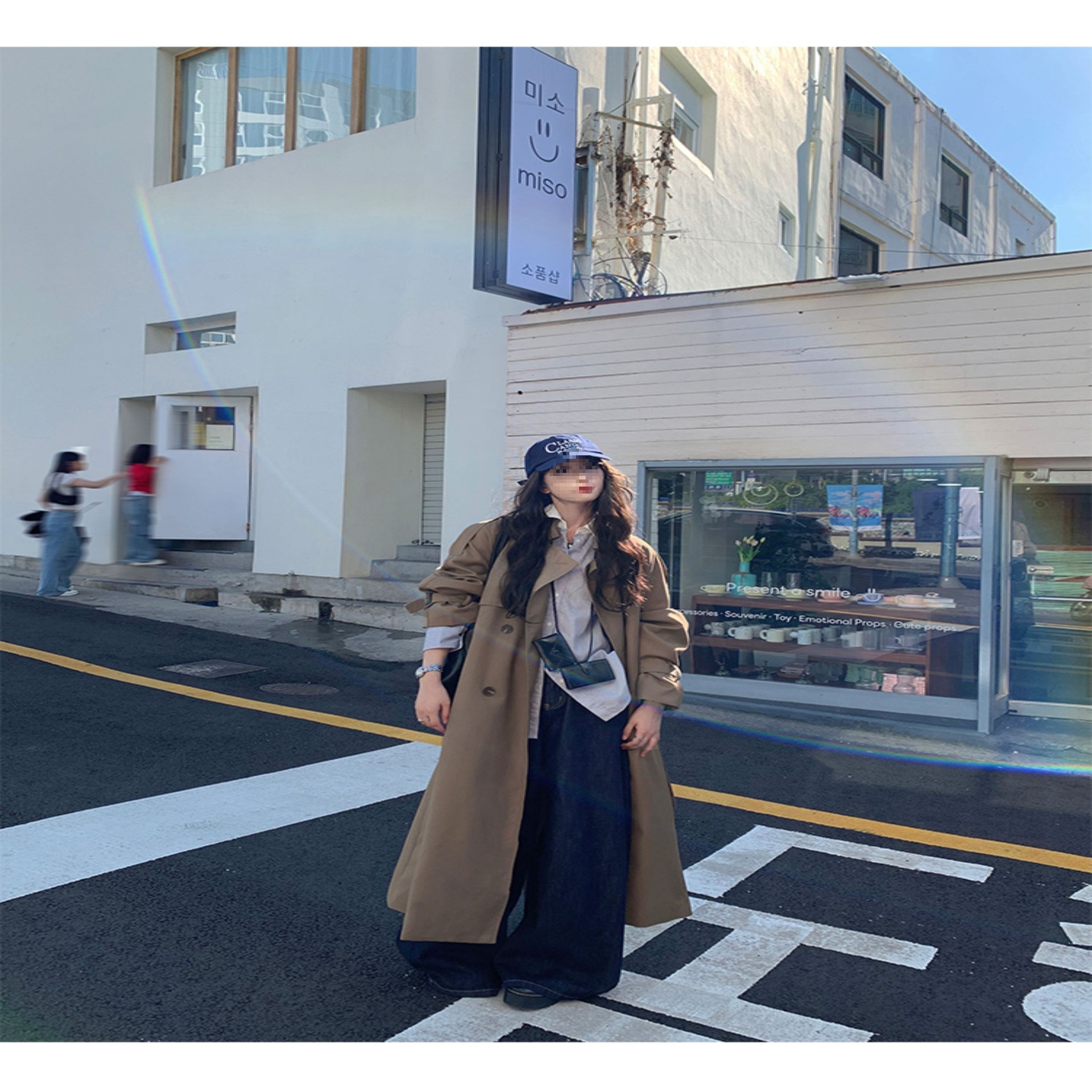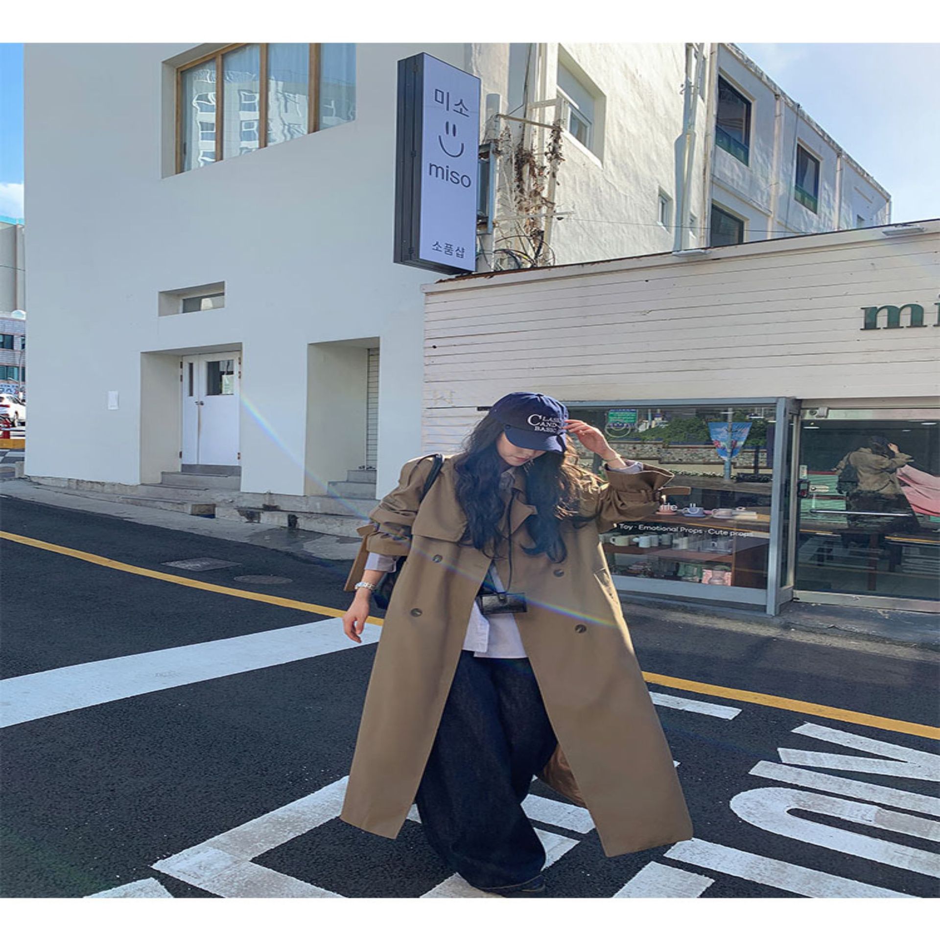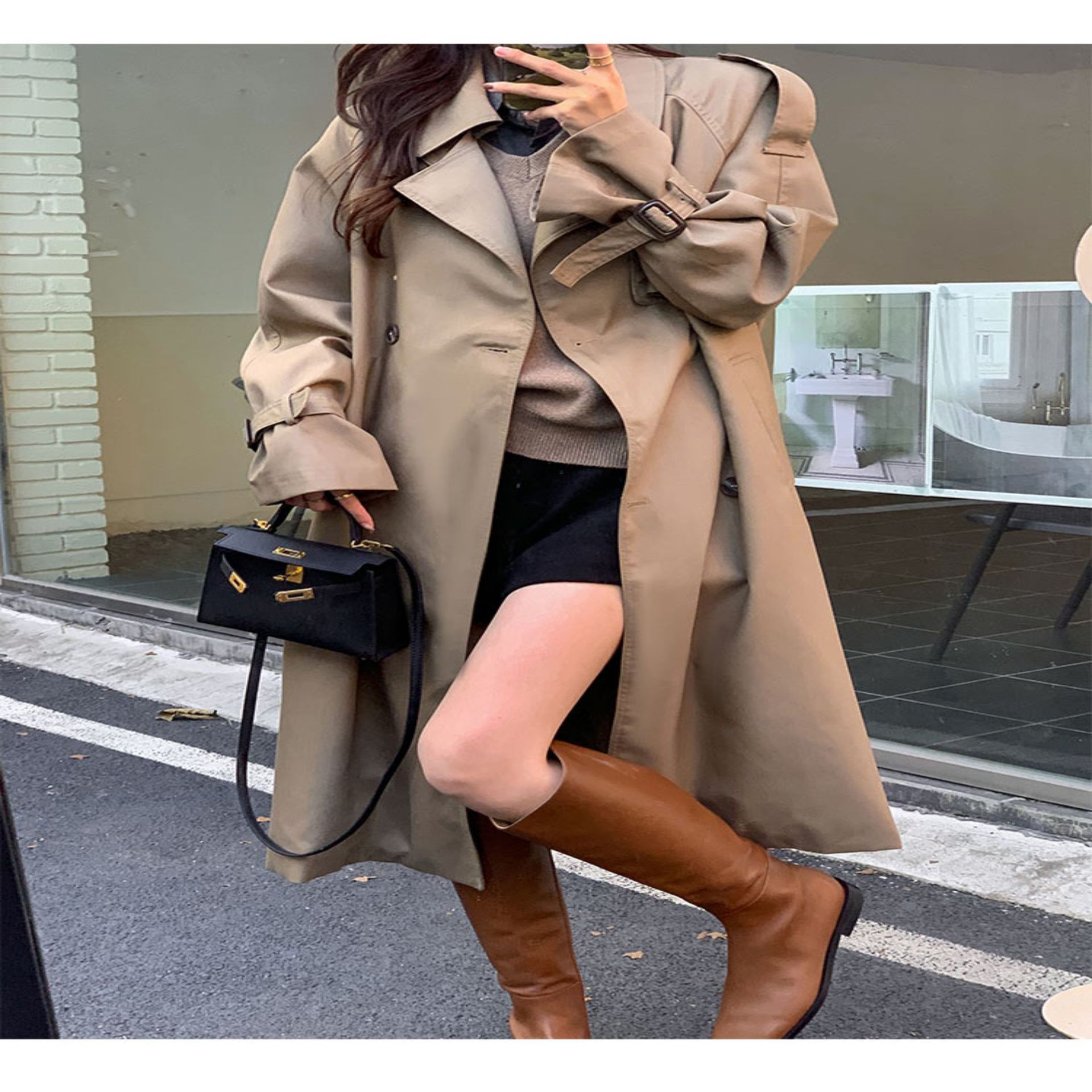 夏蓝汐雨SMBL RAIN宽松系带过膝长款大衣复古显瘦英伦风衣外套女